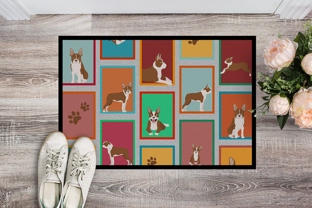 Decorate your space with our Boston Terrier artwork on a Doormat. Welcome your guests in style with our Artwork Door Mat, designed to withstand almost any weather condition. This mat, measuring approximately 18 by 27 inches, is held together by durable black binding tape. Its top layer, composed of polyester felt, is dyed with the eye-catching image you see on the mat. A few layers below provide the mat with stability, while its rubber bottom is stamped to help prevent slipping and ensures safety. Our mat works wonderfully as both an indoor or outdoor door mat. For cleaning, simply hose it off with water or use a power washer - no need for any cleaner that produces suds. Avoid scrubbing with a brush, instead, opt for the vacuum on floor setting. Designed manufactured and printed in the USA, this mat is a perfect addition to your porch, outdoor kitchen, entryway, or any indoor space. Its unique design makes it a charming decorative rug that greets your guests and adds a stylish touch to your home decor.