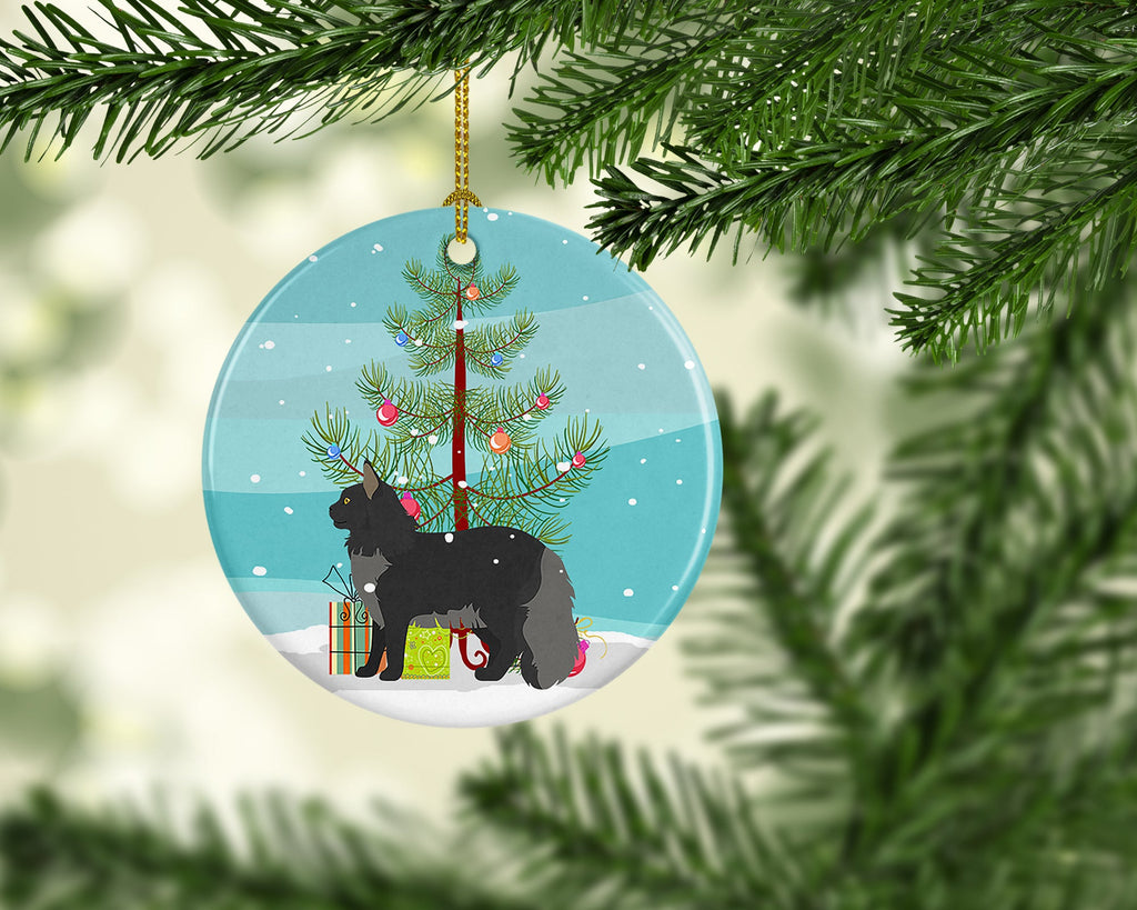 Decorate your space with our Christmas Maine Coon artwork on a Ornament. Add a touch of personalized charm to your Christmas tree this holiday season with our Ceramic Ornament. Measuring 2.8125 inches in diameter, this round porcelain ornament beautifully reflects your festive lights, enhancing your holiday decor. The gloss surface sets off the vibrant, full-color artwork contributed by one of our talented artists, bringing a pop of color and joy to your tree. This Ceramic Ornament doesn't stop at being merely decorative. The white back is designed for personalization. Write a heartfelt message, mark a special year, or inscribe a date with a paint pen or a permanent marker to create a treasured memento. Please ensure you allow any personalization to dry thoroughly before handling to maintain the pristine finish. Included with the ornament is a delicate gold cord for easy hanging. Made in the USA, this Ceramic Ornament makes an exceptional gift for a pet sitter, teacher, family member, or anyone you wish to share a little Christmas magic with. With its blend of style, charm, and personal touch, it's a meaningful addition to any Christmas tree.
