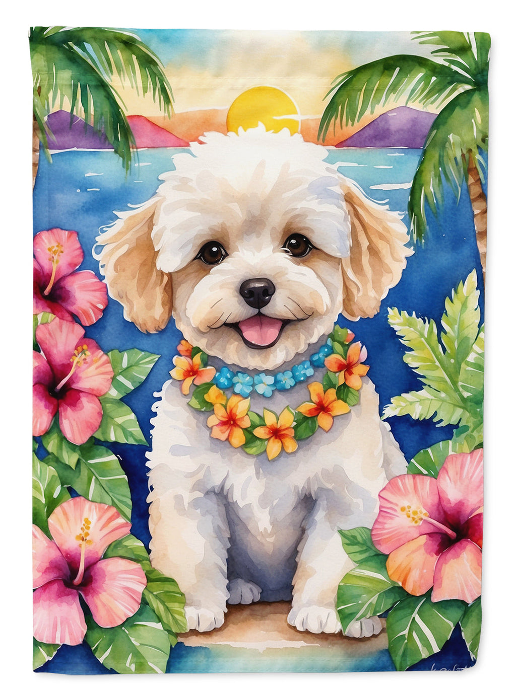 Decorate your space with our Maltipoo artwork on a Large Flag. Bring a bit of Summer into your home with a Summer Large Flag. Presenting our Heavy Duty Polyester House Size Decorative Sleeve Pole Flag, a vibrant addition to enhance the aesthetic appeal of your home. This large decorative flag, measuring approximately 28 x 40 inches, offers ample coverage and visibility. Each flag is meticulously sewn and made individually, ensuring a unique piece that may slightly vary in size. It's a sleeve pole flag, designed to fit a standard decorative flag pole effortlessly. Please note that the flag pole and bracket are not included and should be purchased separately. What sets our flag apart is its dual-sided print. The design is mirrored on both sides of the fabric, allowing for uniform visibility regardless of the angle. Printed in full color, our flag showcases vibrant hues that truly stand out. To ensure lasting vibrancy and durability, the dyes are heat-set into the fabric. This ensures your flag remains bright and captivating through various weather conditions. Elevate the look of your home with our Heavy Duty Polyester House Size Decorative Sleeve Pole Flag!