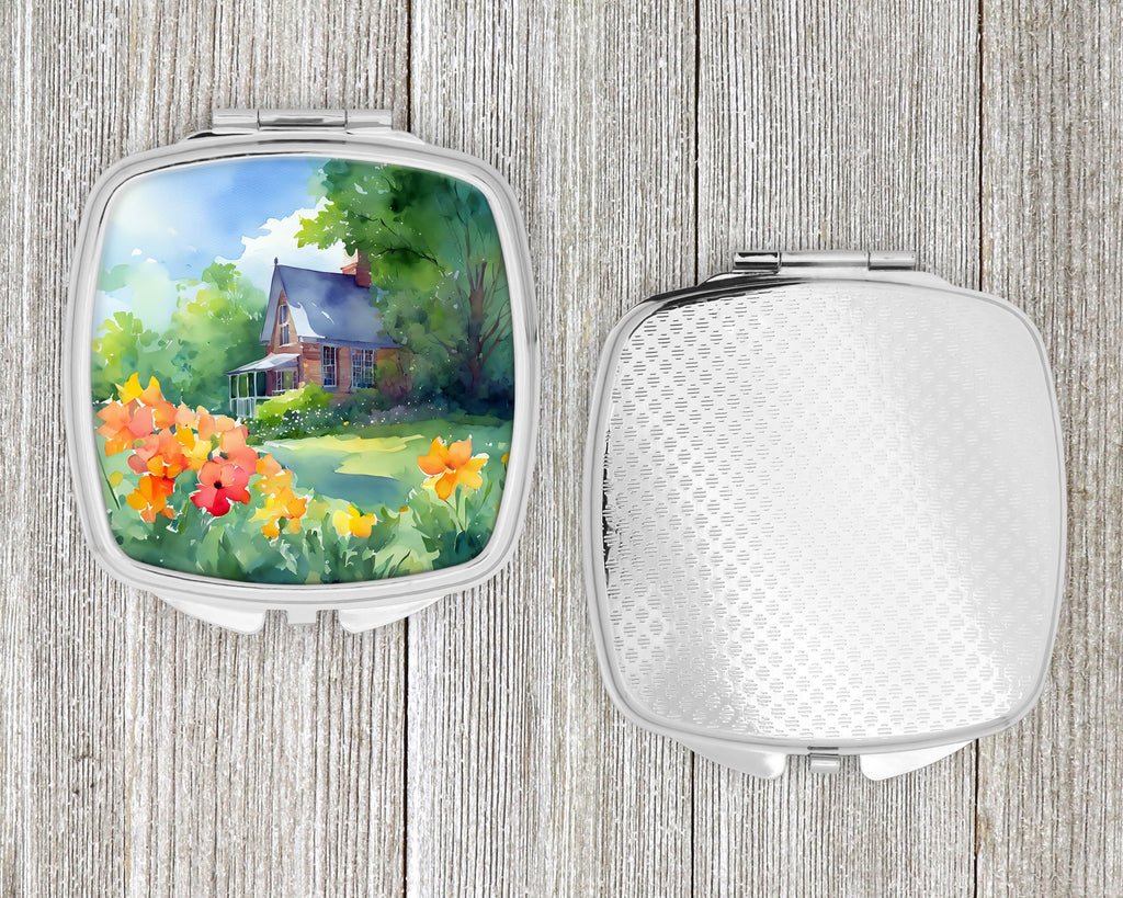 Compact Mirror featuring breed specific Massachusetts Mayflowers artwork. Introducing our Square Compact Mirror, a blend of elegance, functionality, and compactness, perfect for on-the-go touch-ups. This Silvertone metal mirror, with dimensions of 2.75 inches x 3 inches x .3 inches, fits effortlessly into your purse, handbag, or pocket, ensuring that you can check your appearance anytime, anywhere. Our compact mirror stands out with its eye-catching artwork on the front, adding a dash of style to this practical accessory. It is more than just a mirror; it's a statement piece that reflects your personality and aesthetic. When opened, this compact reveals two mirrors inside, doubling your perspective for precise touch-ups. The Silvertone metal construction ensures durability while maintaining a lightweight feel, making it an ideal everyday carry item. Whether you're rushing to a meeting, prepping for a dinner date, or just need a quick check on your look, our Square Compact Mirror is your reliable companion. Experience the perfect blend of style and practicality with this must-have accessory.