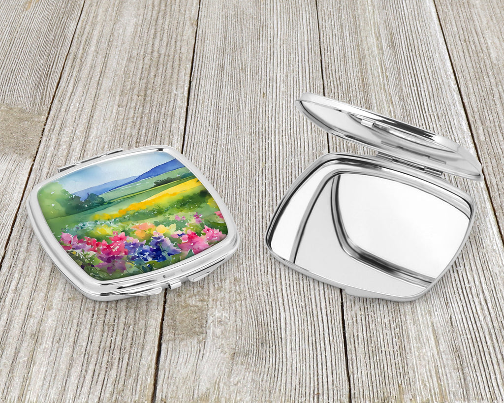 Compact Mirror featuring breed specific Massachusetts Mayflowers artwork. Introducing our Square Compact Mirror, a blend of elegance, functionality, and compactness, perfect for on-the-go touch-ups. This Silvertone metal mirror, with dimensions of 2.75 inches x 3 inches x .3 inches, fits effortlessly into your purse, handbag, or pocket, ensuring that you can check your appearance anytime, anywhere. Our compact mirror stands out with its eye-catching artwork on the front, adding a dash of style to this practical accessory. It is more than just a mirror; it's a statement piece that reflects your personality and aesthetic. When opened, this compact reveals two mirrors inside, doubling your perspective for precise touch-ups. The Silvertone metal construction ensures durability while maintaining a lightweight feel, making it an ideal everyday carry item. Whether you're rushing to a meeting, prepping for a dinner date, or just need a quick check on your look, our Square Compact Mirror is your reliable companion. Experience the perfect blend of style and practicality with this must-have accessory.