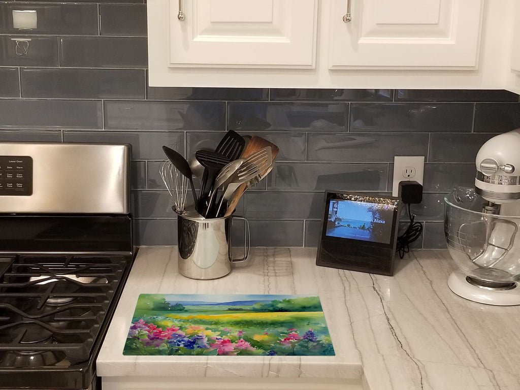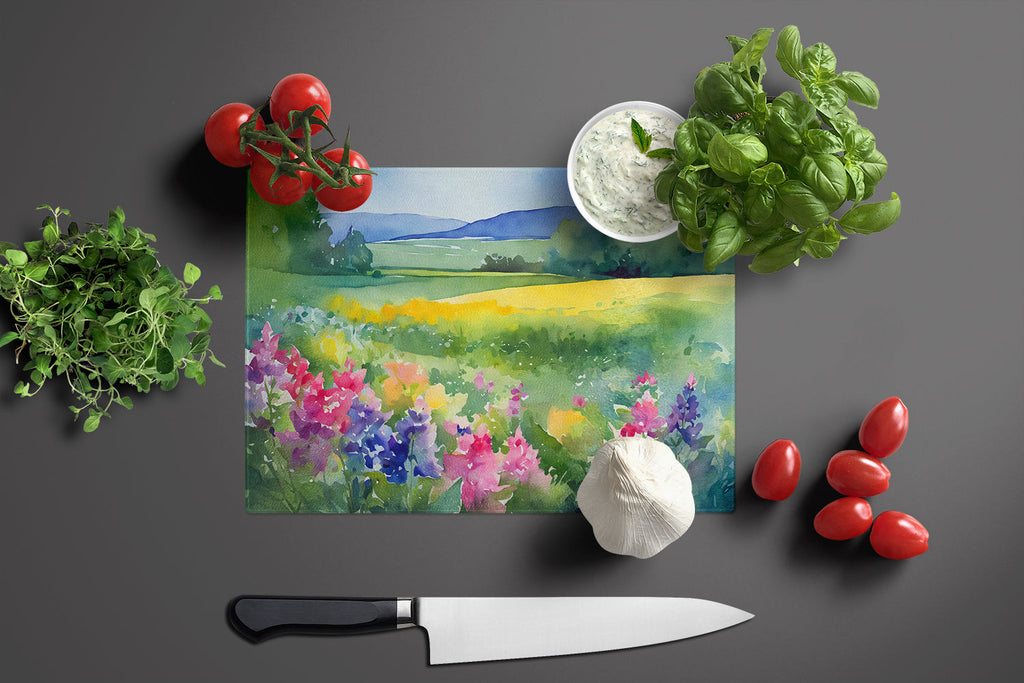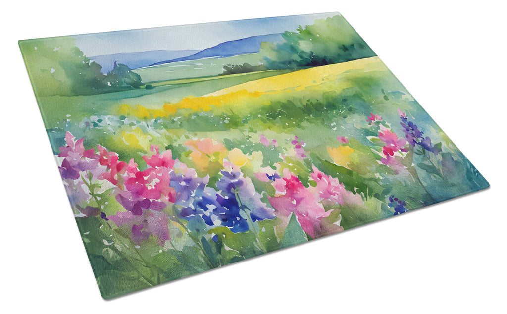 Massachusetts Mayflowers in Watercolor Glass Cutting Boards – Durable, Decorative Kitchen Art Large