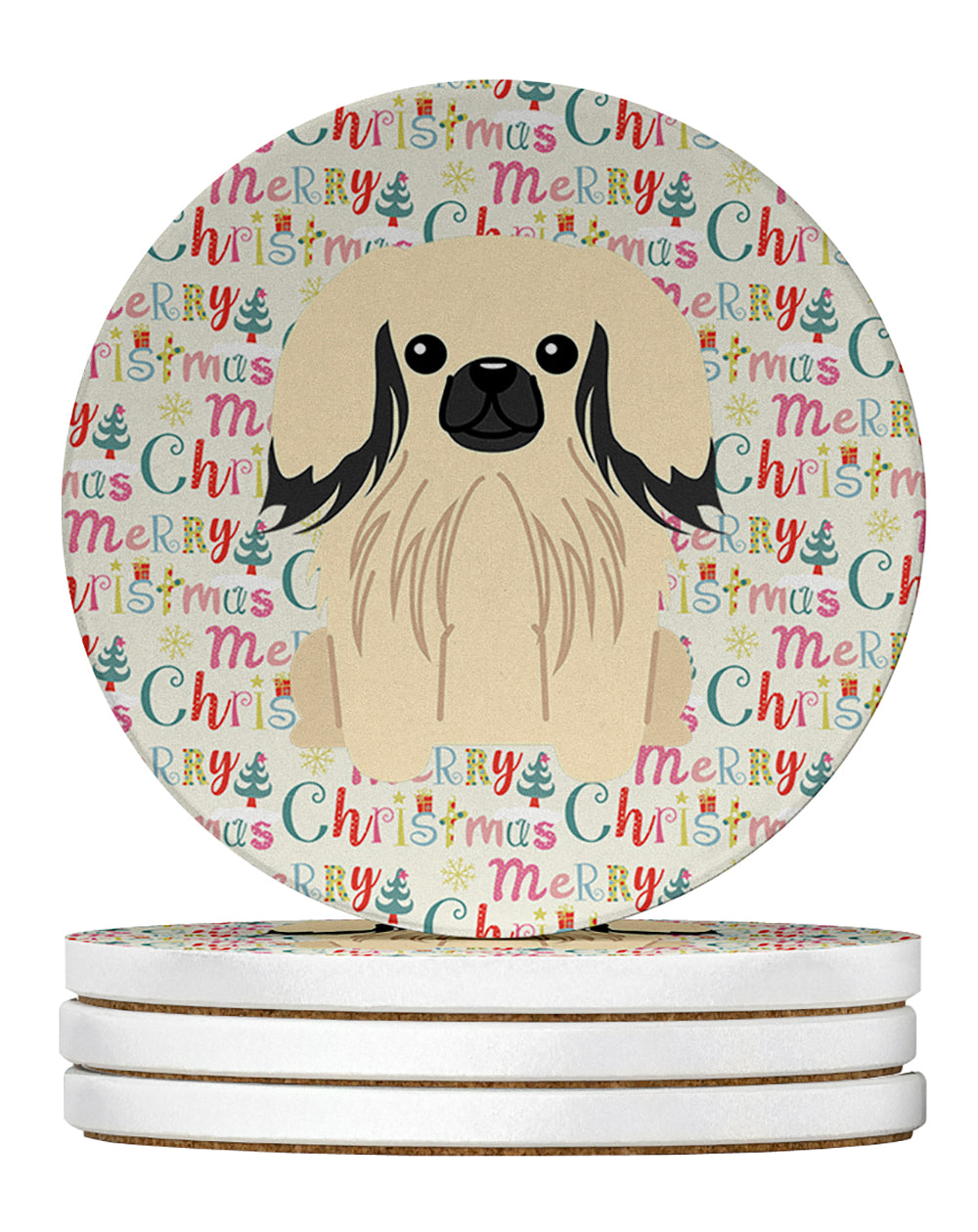 Merry Christmas Pekingese Cream Large Sandstone Coasters Pack of 4