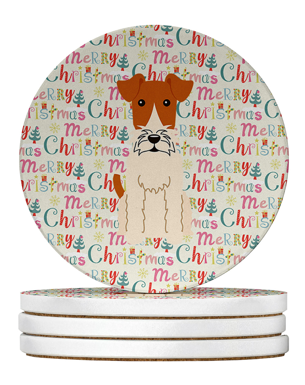 Decorate your space with our Christmas Fox Terrier artwork on a Sandstone Coasters Pack of 4. Introducing Caroline's Treasures Large Sandstone Coasters Pack of 4, the perfect addition to your home decor. Each coaster measures nearly 4 inches and is made from absorbent sandstone with a cork backing. Designed and printed in the United States, these coasters feature artwork from Caroline's Treasures' talented artists. Protect your countertops and tables from hot and cold drink condensation with these absorbent coasters. They efficiently absorb moisture, ensuring your surfaces stay dry and clean. Choose from a wide range of designs to update and enhance your decor or give them as a thoughtful gift for any occasion. Cleaning is a breeze�simply wipe the coaster with a damp towel to remove any spills or stains. Each set comes in a brown gift box, making it ready to be wrapped for that special person in your life. These absorbent sandstone coasters also make an excellent housewarming gift, providing both practicality and style. Celebrate birthdays, Mother's Day, Father's Day, Thanksgiving, Christmas, Teacher's Appreciation Day, or simply show someone you care with these versatile and charming coasters. Caroline's Treasures Large Sandstone Coasters Pack of 4 is the perfect happy gift for any occasion.