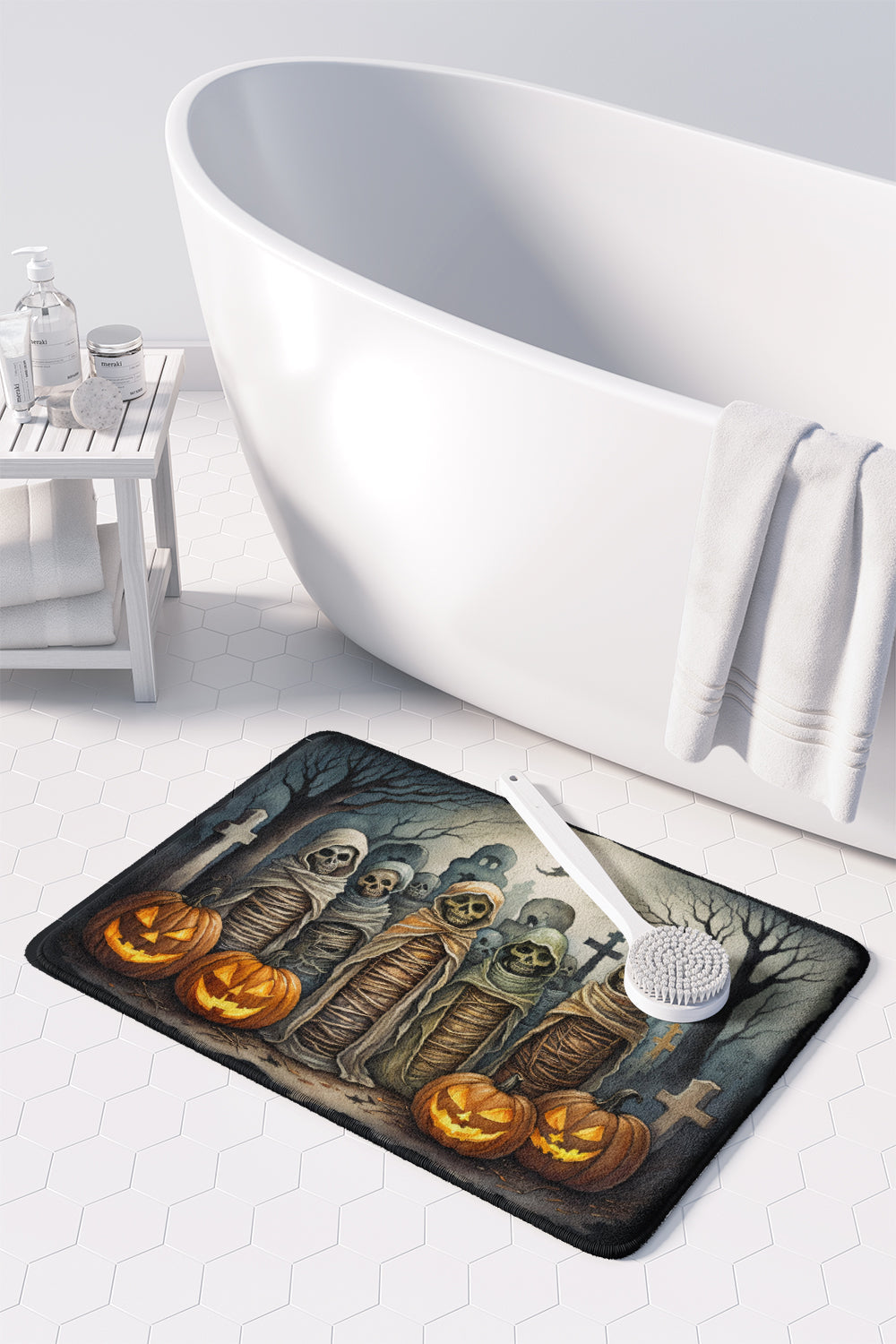 Decorate your space with our Halloween artwork on a Floor Mat. Transform your floor into a work of art with Caroline's Treasures' Memory Foam Mat. This mat offers not only a stunning visual appeal but also a luxurious, plush feel that's incredibly comfortable to the touch. It's a versatile, machine-washable mat designed for both bath and kitchen use, ensuring you experience the best in comfort and convenience. Care Instructions: Maintaining this memory foam mat is a breeze. Simply follow the care instructions on the product tag. It's recommended to wash in cold water and dry on a low-temperature setting in the dryer. This ensures the mat retains its quality and longevity, allowing you to enjoy its beauty and comfort for a long time. Caroline's Treasures' Memory Foam Mat Machine Washable is the perfect blend of artistry, comfort, and practicality, making it a standout addition to any space. Upgrade your home decor with this versatile and stylish mat today.