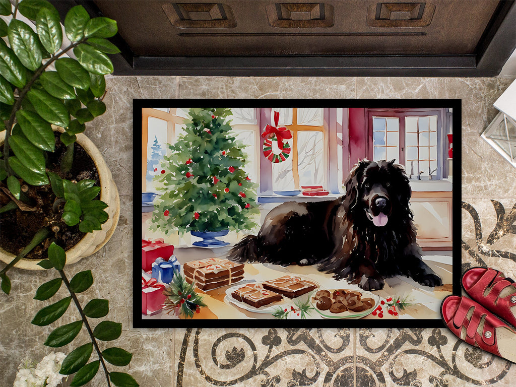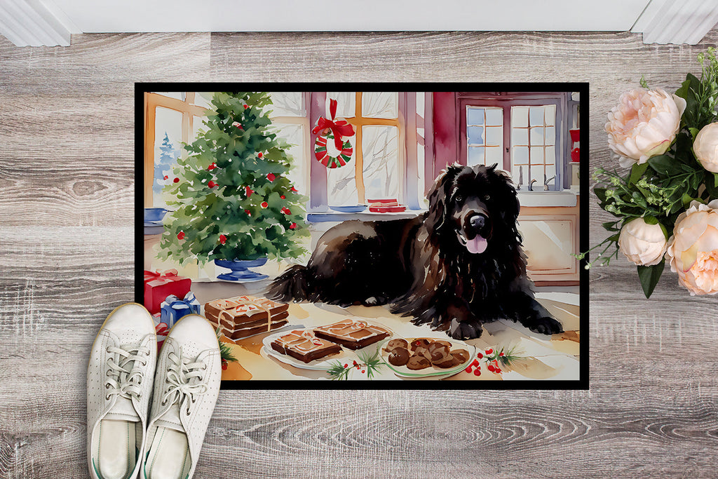 Decorate your space with our Christmas Newfoundland artwork on a Doormat. Welcome your guests in style with our Artwork Door Mat, designed to withstand almost any weather condition. This mat, measuring approximately 18 by 27 inches, is held together by durable black binding tape. Its top layer, composed of polyester felt, is dyed with the eye-catching image you see on the mat. A few layers below provide the mat with stability, while its rubber bottom is stamped to help prevent slipping and ensures safety. Our mat works wonderfully as both an indoor or outdoor door mat. For cleaning, simply hose it off with water or use a power washer - no need for any cleaner that produces suds. Avoid scrubbing with a brush, instead, opt for the vacuum on floor setting. Designed manufactured and printed in the USA, this mat is a perfect addition to your porch, outdoor kitchen, entryway, or any indoor space. Its unique design makes it a charming decorative rug that greets your guests and adds a stylish touch to your home decor.