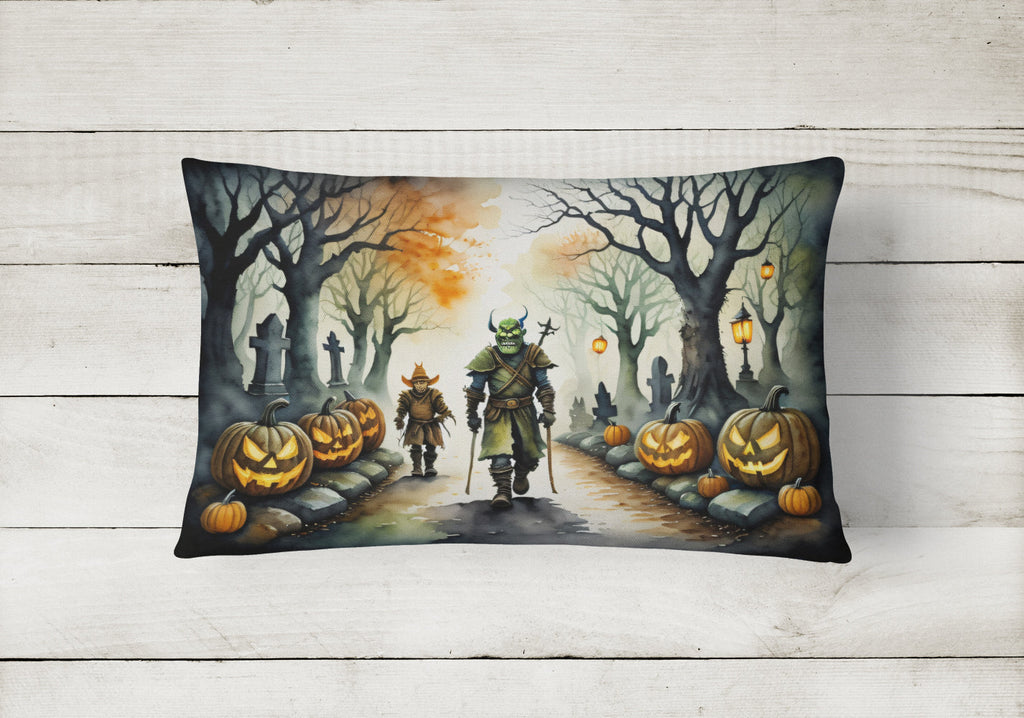 Decorate your space with our Halloween artwork on a Pillow. Embrace the fusion of comfort and style with Caroline's Treasures Fabric Decorative Pillow. This 12x16 inch outdoor pillow is designed to complement your patio furniture, adding a splash of color and artistry to your outdoor setting. Constructed with a 100% Polyester Fabric pillow sham filled with a plush pillow form, this cushion is as comfortable as it is durable. Our outdoor pillow utilizes a novel fabric, meticulously woven for enhanced water resistance. This soft canvas material is equally suited for your indoor couch as well as outdoor settings such as the patio, porch, or veranda. To ensure enduring vibrance, we employ colorfast dyes resistant to fading even when subjected to weather elements. The making of this pillow involves the delicate sewing together of three fabric pieces to create a sham, into which a polyester insert is carefully placed. The result is an overstuffed pillow that tenaciously holds its shape. With both the sham and the pillow insert crafted in the United States, these handmade pillows are a testament to superior local craftsmanship. Note that as these pillows are handmade, sizes may slightly vary, enhancing their unique appeal. Enjoy comfort in style with Caroline's Treasures Fabric Decorative Pillow.
