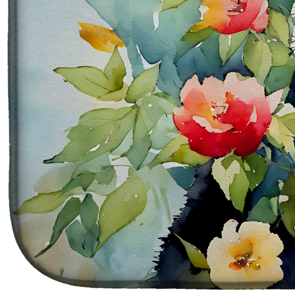 Dish Drying Mat featuring breed specific Panda artwork. Say goodbye to messy countertops and soggy dish towels with our innovative dish drying mat. Our high-quality dish drying pad is designed to keep your countertops dry while offering a stylish and efficient solution. Whether you're air drying dishes, glasses, stemware, silverware, pots, pans, bottles, or even fruits and vegetables, our dish mat is the perfect choice. The 14 inches x 22 inches size fits most counters and dish drying racks, and the non-slip design ensures stability. Made with water-absorbent polyester and a polyurethane foam insert, our dish drying mat is not only functional but also durable. It's machine washable and printed in the USA for long-lasting use. The beautiful artwork adds flair to your kitchen decor, making it a perfect housewarming gift or present for any occasion. Upgrade your kitchen experience with our absorbent and versatile dish drying mat.