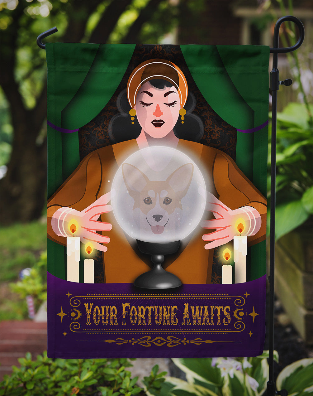 Decorate your space with our Halloween Corgi artwork on a Garden Flag. Enhance the beauty of your garden, patio, or yard with Caroline's Treasures Decorative Garden Flag, proudly made in the USA. Crafted from two pieces of thick, double-sided polyester fabric, this 2-ply garden flag is designed to withstand various weather conditions, making it water-resistant and weatherproof. Featuring correctly readable words on both sides, this garden flag offers a delightful visual experience from any angle. With its heavier weight, it stands out among other garden flags, ensuring stability and durability even in wind, rain, and snow. Measuring approximately 11 1/4 inches by 15 1/2 inches, this flag allows you to personalize your outdoor decor. It comes with a 1 1/2-inch sleeve sewn in, allowing easy attachment to any standard garden flag stand or garden size porch hanger (sold separately). Make a statement in your outdoor space with Caroline's Treasures Decorative Garden Flag, a vibrant and high-quality flag that adds color and personality to your surroundings. Proudly made in the USA, it's a symbol of quality craftsmanship and attention to detail.
