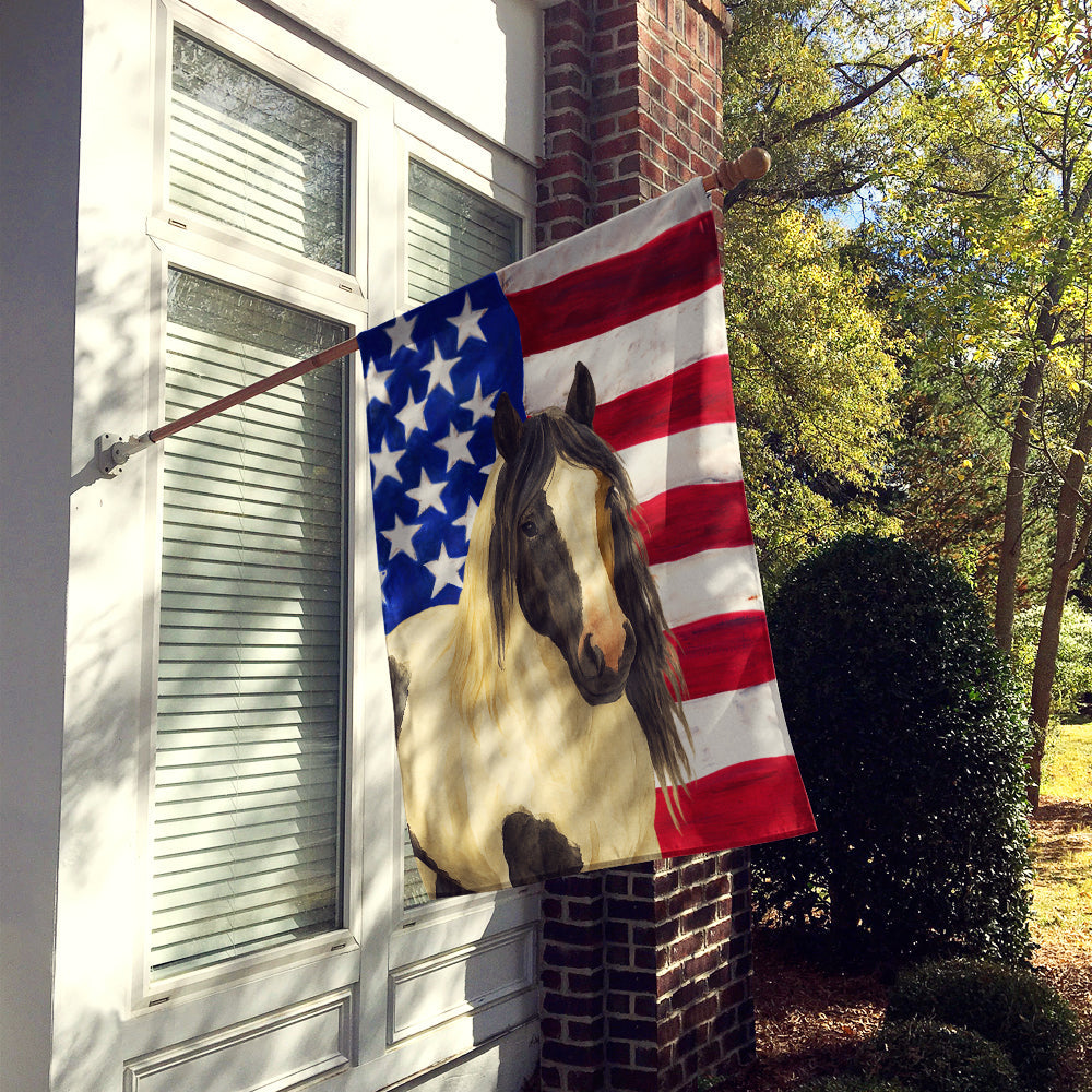 House Flag featuring breed specific Gypsy Vanner artwork. Presenting our Heavy Duty Polyester House Size Decorative Sleeve Pole Flag, a vibrant addition to enhance the aesthetic appeal of your home. This large decorative flag, measuring approximately 28 x 40 inches, offers ample coverage and visibility. Each flag is meticulously sewn and made individually, ensuring a unique piece that may slightly vary in size. It's a sleeve pole flag, designed to fit a standard decorative flag pole effortlessly. Please note that the flag pole and bracket are not included and should be purchased separately. What sets our flag apart is its dual-sided print. The design is mirrored on both sides of the fabric, allowing for uniform visibility regardless of the angle. Printed in full color, our flag showcases vibrant hues that truly stand out. To ensure lasting vibrancy and durability, the dyes are heat-set into the fabric. This ensures your flag remains bright and captivating through various weather conditions. Elevate the look of your home with our Heavy Duty Polyester House Size Decorative Sleeve Pole Flag!