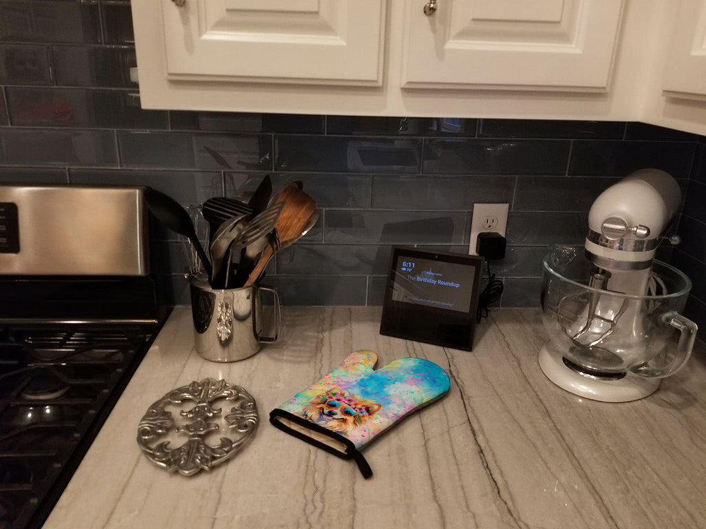 Decorate your space with our Pomeranian artwork on a Oven Mitt. Bring a bit of Summer into your home with a Summer Oven Mitt. Presenting our Large Right Hand Thick Heat Resistant Oven Mitt, an indispensable tool for any culinary enthusiast. This mitt boasts layers of quilted protection on both sides, providing outstanding resistance against extreme heat. Embellished with beautifully printed artwork, it adds an extra dash of charm to your kitchen decor. At about 12 inches long and 8 1/2 inches wide, this oven mitt offers a generous fit, accommodating a diverse range of hand sizes. Its design is enhanced by a sleek Black bias tape trim, finished with a convenient hoop for easy hanging. Fresh out of the packaging, the quilting process may give the mitt a stiff feel, but rest assured, it will soften with use and washing. Our mitt is crafted with a unique center fabric, Insul-Bright, a composite material made from polyester fibers, needle-punched through a nonwoven substrate and a reflective metallized film. This smart material resists both conduction and radiant energy, reflecting heat back to its source, all while remaining breathable. Our oven mitt is machine washable and safe for tumble drying. It's a perfect gift for your favorite Chef, BBQ enthusiast, or just a little treat for yourself! Experience safety, style, and convenience rolled into one with this exceptional oven mitt.