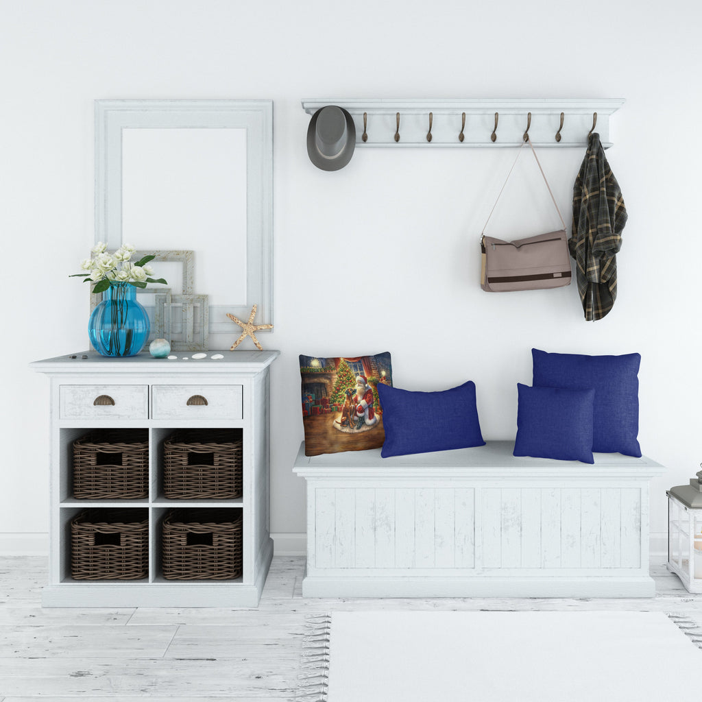 Throw Pillow featuring breed specific Rhodesian Ridgeback artwork. Celebrate Christmas with this Christmas Pillow. Revitalize your outdoor or indoor living space with Caroline's Treasures 18x18 Fabric Decorative Pillow. With a generously sized dimension of approximately 18 inches by 18 inches, this pillow makes a comfortable and aesthetic addition to any seating area. Made from a unique, water-resistant material developed by Caroline's Treasures, the pillow sham is 100% polyester fabric that's durable and ready to weather any condition. Its vibrant, full-color artwork will not fade over time as it is dyed with color-fast dyes. Whether you place it on your patio furniture, porch, veranda, or indoor couch, its soft canvas fabric ensures a cozy experience. The pillow is handcrafted in the United States, featuring a sham created from three pieces of fabric and a polyester insert for enduring shape and overstuffed comfort. Despite being robustly built to endure the outdoors, it is as soft and snug as your favorite indoor cushions. Please note, as all our pillows are handmade, sizes may vary slightly, adding to the charm of this unique decorative item.