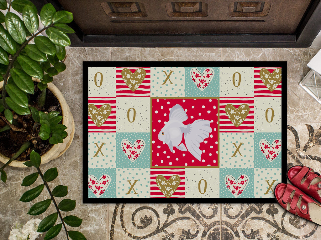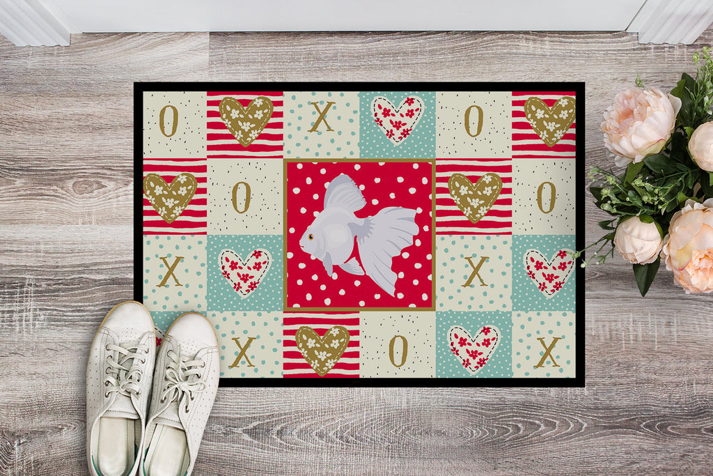 Decorate your space with our Valentine's Day artwork on a Doormat. Welcome your guests in style with our Artwork Door Mat, designed to withstand almost any weather condition. This mat, measuring approximately 18 by 27 inches, is held together by durable black binding tape. Its top layer, composed of polyester felt, is dyed with the eye-catching image you see on the mat. A few layers below provide the mat with stability, while its rubber bottom is stamped to help prevent slipping and ensures safety. Our mat works wonderfully as both an indoor or outdoor door mat. For cleaning, simply hose it off with water or use a power washer - no need for any cleaner that produces suds. Avoid scrubbing with a brush, instead, opt for the vacuum on floor setting. Designed manufactured and printed in the USA, this mat is a perfect addition to your porch, outdoor kitchen, entryway, or any indoor space. Its unique design makes it a charming decorative rug that greets your guests and adds a stylish touch to your home decor.