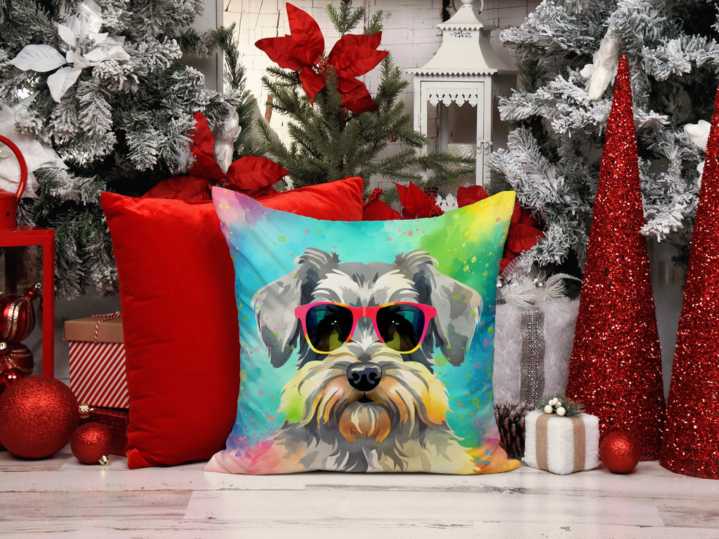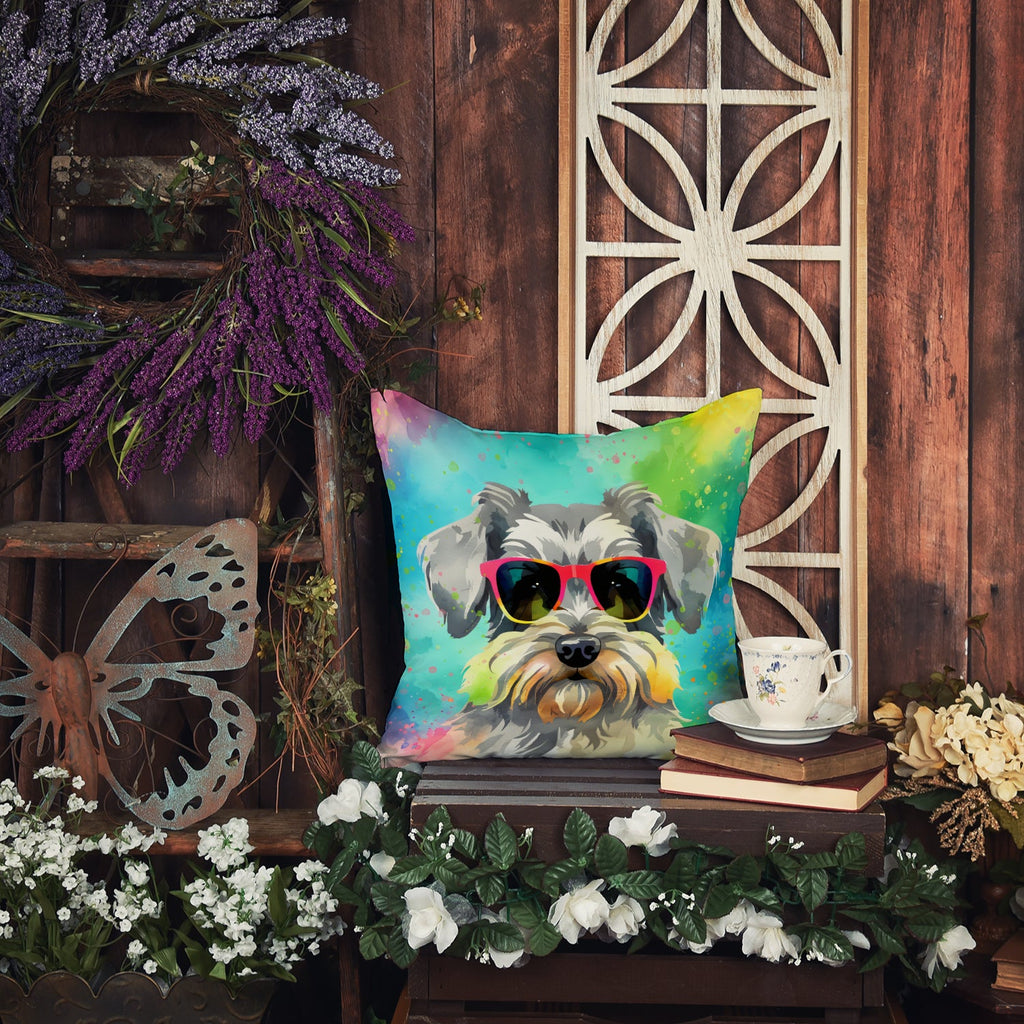 Decorate your space with our Schnauzer artwork on a Pillow. Bring a bit of Summer into your home with a Summer Pillow. Revitalize your outdoor or indoor living space with Caroline's Treasures 18x18 Fabric Decorative Pillow. With a generously sized dimension of approximately 18 inches by 18 inches, this pillow makes a comfortable and aesthetic addition to any seating area. Made from a unique, water-resistant material developed by Caroline's Treasures, the pillow sham is 100% polyester fabric that's durable and ready to weather any condition. Its vibrant, full-color artwork will not fade over time as it is dyed with color-fast dyes. Whether you place it on your patio furniture, porch, veranda, or indoor couch, its soft canvas fabric ensures a cozy experience. The pillow is handcrafted in the United States, featuring a sham created from three pieces of fabric and a polyester insert for enduring shape and overstuffed comfort. Despite being robustly built to endure the outdoors, it is as soft and snug as your favorite indoor cushions. Please note, as all our pillows are handmade, sizes may vary slightly, adding to the charm of this unique decorative item.