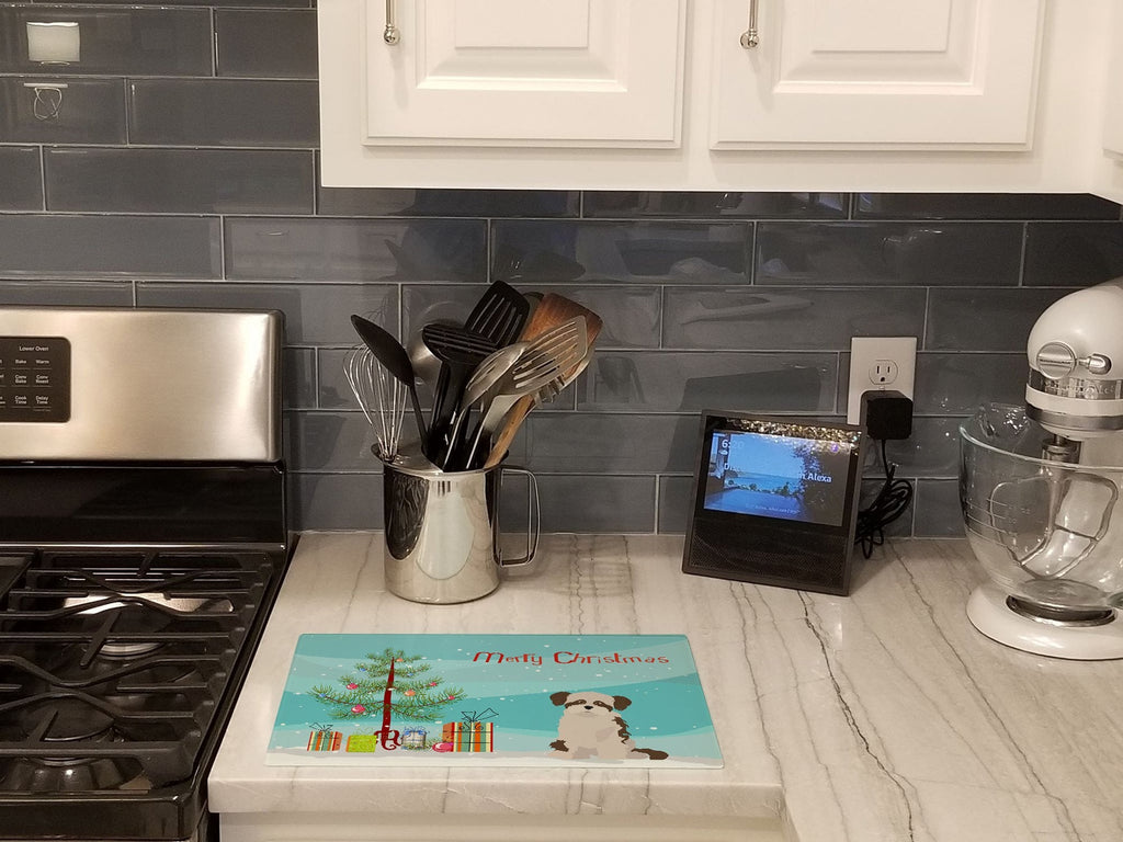 Decorate your space with our Christmas Shi Chi artwork on a Cutting Board. Introduce your kitchen to the vibrant, large Decorative Glass Cutting Board from Caroline's Treasures. Crafted from resilient tempered glass, this board is not only a utilitarian necessity but also a colorful art piece. With its generous dimensions of 15 inches in height and 12 inches in length, it offers ample space for all your cutting needs. Every piece showcases captivating artwork from distinguished artists, bringing an aesthetic edge to your kitchen. Beyond its attractive design, this cutting board ensures your countertop stays pristine and unscathed, owing to its heat-resistant properties. Engineered with user convenience in mind, it features non-skid feet for stability, and rounded corners for additional safety. Its robust construction renders it virtually unbreakable, guaranteeing longevity. The board comes with protective feet bumpers, maintaining its position during use. This product is recommended to be hand washed only. Proudly printed and assembled in the United States, this cutting board exemplifies superior craftsmanship. With Caroline's Treasures' Decorative Glass Cutting Board, you're investing in a blend of functionality and artistic flair.