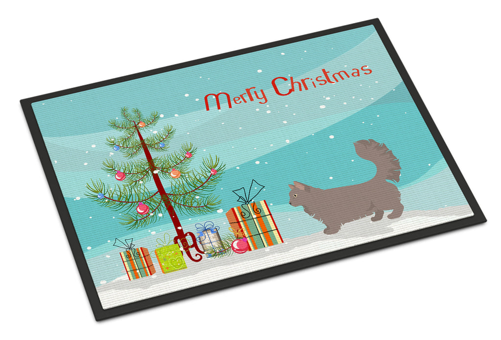 Decorate your space with our Christmas Skookum artwork on a Doormat. Welcome your guests in style with our Artwork Door Mat, designed to withstand almost any weather condition. This mat, measuring approximately 24 by 36 inches, is held together by durable black binding tape. Its top layer, composed of polyester felt, is dyed with the eye-catching image you see on the mat. A few layers below provide the mat with stability, while its rubber bottom is stamped to help prevent slipping and ensures safety. Our mat works wonderfully as both an indoor or outdoor door mat. For cleaning, simply hose it off with water or use a power washer - no need for any cleaner that produces suds. Avoid scrubbing with a brush, instead, opt for the vacuum on floor setting. Designed manufactured and printed in the USA, this mat is a perfect addition to your porch, outdoor kitchen, entryway, or any indoor space. Its unique design makes it a charming decorative rug that greets your guests and adds a stylish touch to your home decor.
