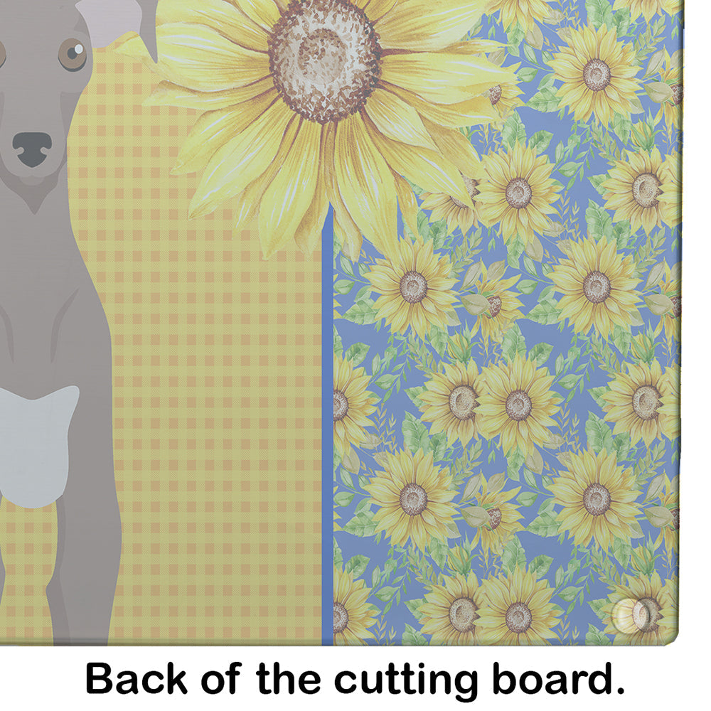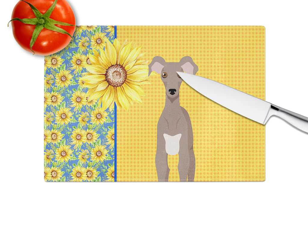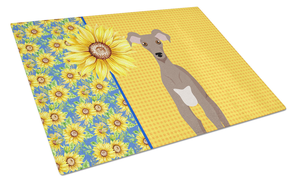 Decorate your space with our Italian Greyhound artwork on a Cutting Board. Bring a bit of Summer into your home with a Summer Cutting Board. Introduce your kitchen to the vibrant, large Decorative Glass Cutting Board from Caroline's Treasures. Crafted from resilient tempered glass, this board is not only a utilitarian necessity but also a colorful art piece. With its generous dimensions of 15 inches in height and 12 inches in length, it offers ample space for all your cutting needs. Every piece showcases captivating artwork from distinguished artists, bringing an aesthetic edge to your kitchen. Beyond its attractive design, this cutting board ensures your countertop stays pristine and unscathed, owing to its heat-resistant properties. Engineered with user convenience in mind, it features non-skid feet for stability, and rounded corners for additional safety. Its robust construction renders it virtually unbreakable, guaranteeing longevity. The board comes with protective feet bumpers, maintaining its position during use. This product is recommended to be hand washed only. Proudly printed and assembled in the United States, this cutting board exemplifies superior craftsmanship. With Caroline's Treasures' Decorative Glass Cutting Board, you're investing in a blend of functionality and artistic flair.