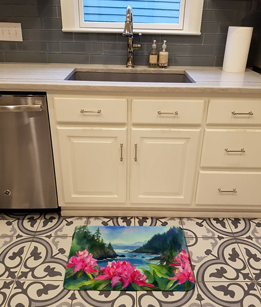 Washington Coast Rhododendrons in Watercolor Memory Foam Kitchen Mat