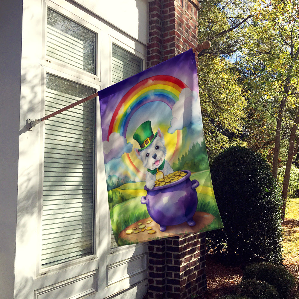 Decorate your space with our St Patrick's Day West Highland White Terrier artwork on a Large Flag. Presenting our Heavy Duty Polyester House Size Decorative Sleeve Pole Flag, a vibrant addition to enhance the aesthetic appeal of your home. This large decorative flag, measuring approximately 28 x 40 inches, offers ample coverage and visibility. Each flag is meticulously sewn and made individually, ensuring a unique piece that may slightly vary in size. It's a sleeve pole flag, designed to fit a standard decorative flag pole effortlessly. Please note that the flag pole and bracket are not included and should be purchased separately. What sets our flag apart is its dual-sided print. The design is mirrored on both sides of the fabric, allowing for uniform visibility regardless of the angle. Printed in full color, our flag showcases vibrant hues that truly stand out. To ensure lasting vibrancy and durability, the dyes are heat-set into the fabric. This ensures your flag remains bright and captivating through various weather conditions. Elevate the look of your home with our Heavy Duty Polyester House Size Decorative Sleeve Pole Flag!