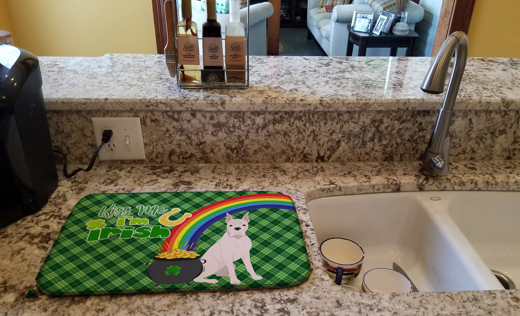 Decorate your space with our St Patrick's Day Boxer artwork on a Dish Drying Mat. Say goodbye to messy countertops and soggy dish towels with our innovative dish drying mat. Our high-quality dish drying pad is designed to keep your countertops dry while offering a stylish and efficient solution. Whether you're air drying dishes, glasses, stemware, silverware, pots, pans, bottles, or even fruits and vegetables, our dish mat is the perfect choice. The 14 inches x 22 inches size fits most counters and dish drying racks, and the non-slip design ensures stability. Made with water-absorbent polyester and a polyurethane foam insert, our dish drying mat is not only functional but also durable. It's machine washable and printed in the USA for long-lasting use. The beautiful artwork adds flair to your kitchen decor, making it a perfect housewarming gift or present for any occasion. Upgrade your kitchen experience with our absorbent and versatile dish drying mat.