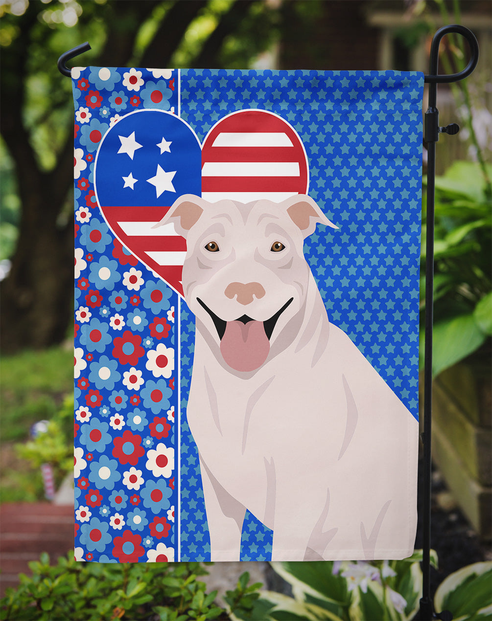 Decorate your space with our Pit Bull Terrier artwork on a Garden Flag. Enhance the beauty of your garden, patio, or yard with Caroline's Treasures Decorative Garden Flag, proudly made in the USA. Crafted from two pieces of thick, double-sided polyester fabric, this 2-ply garden flag is designed to withstand various weather conditions, making it water-resistant and weatherproof. Featuring correctly readable words on both sides, this garden flag offers a delightful visual experience from any angle. With its heavier weight, it stands out among other garden flags, ensuring stability and durability even in wind, rain, and snow. Measuring approximately 11 1/4 inches by 15 1/2 inches, this flag allows you to personalize your outdoor decor. It comes with a 1 1/2-inch sleeve sewn in, allowing easy attachment to any standard garden flag stand or garden size porch hanger (sold separately). Make a statement in your outdoor space with Caroline's Treasures Decorative Garden Flag, a vibrant and high-quality flag that adds color and personality to your surroundings. Proudly made in the USA, it's a symbol of quality craftsmanship and attention to detail.