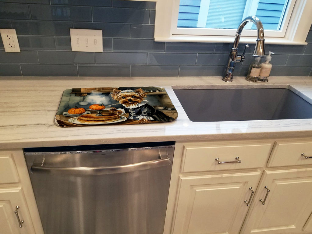 Dish Drying Mat featuring breed specific Yorkshire Terrier artwork. Celebrate Halloween with this Halloween Dish Drying Mat. Say goodbye to messy countertops and soggy dish towels with our innovative dish drying mat. Our high-quality dish drying pad is designed to keep your countertops dry while offering a stylish and efficient solution. Whether you're air drying dishes, glasses, stemware, silverware, pots, pans, bottles, or even fruits and vegetables, our dish mat is the perfect choice. The 14 inches x 22 inches size fits most counters and dish drying racks, and the non-slip design ensures stability. Made with water-absorbent polyester and a polyurethane foam insert, our dish drying mat is not only functional but also durable. It's machine washable and printed in the USA for long-lasting use. The beautiful artwork adds flair to your kitchen decor, making it a perfect housewarming gift or present for any occasion. Upgrade your kitchen experience with our absorbent and versatile dish drying mat.
