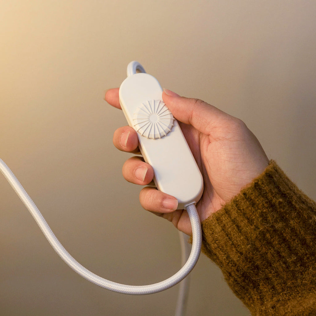 The Liunk's unique lamp shade is inspired by the cross hatching technique employed in traditional rug and chair making. The weaving texture found on the shade creates the illusion of fabric weaving in and out of the light and invokes a sense of motion.