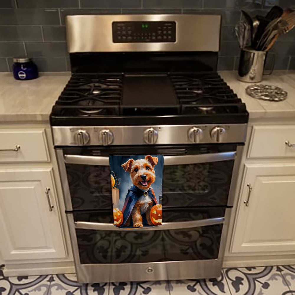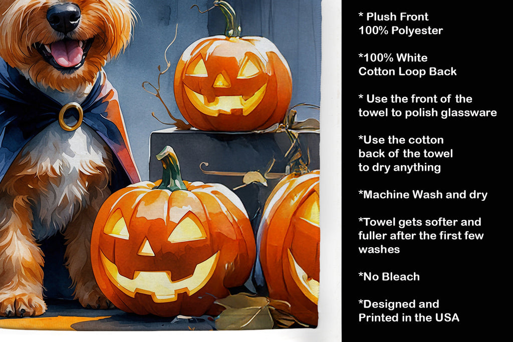 Kitchen Towel featuring breed specific Airedale Terrier artwork. Celebrate Halloween with this Halloween Kitchen Towel. Experience the perfect blend of aesthetic appeal and functional excellence with our Plush Velour Kitchen Towels. These are not your ordinary decorative kitchen towels that gather dust. Instead, they are designed to be as practical as they are stylish. The front layer of our towel is constructed from a minky plush polyester, known for its durability and color retention. Unlike conventional kitchen towels, the artwork on our towels is dyed directly into the fabric, ensuring vibrant colors that last. Polish your glassware to a brilliant sparkle using the plush front side of the towel. Flip to the back, crafted from 100% cotton terry loop, to exploit its exceptional absorbency for drying dishes or wiping down counters. Our kitchen towels redefine the concept of functional art, offering lasting quality that maintains the towel's shape over time. Measuring 15 inches by 25 inches and weighing 2.3 lbs per dozen, these towels deliver an overwhelming sensory experience with their soft, plush, and smooth texture. The edges are meticulously finished with binding, enhancing their durability and visual appeal. For your convenience, these towels are machine washable and can be dried on low heat. After the first wash, the top fabric becomes even softer and fluffier, eliminating the need for ironing. Treat your kitchen to the luxury and functionality it deserves with our plush velour kitchen towels.