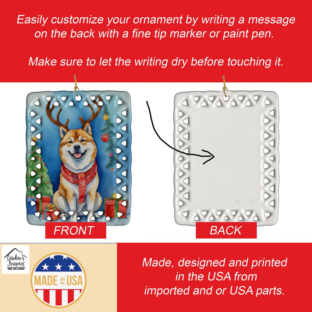 Akita Christmas Reindeer Porcelain Ornament
