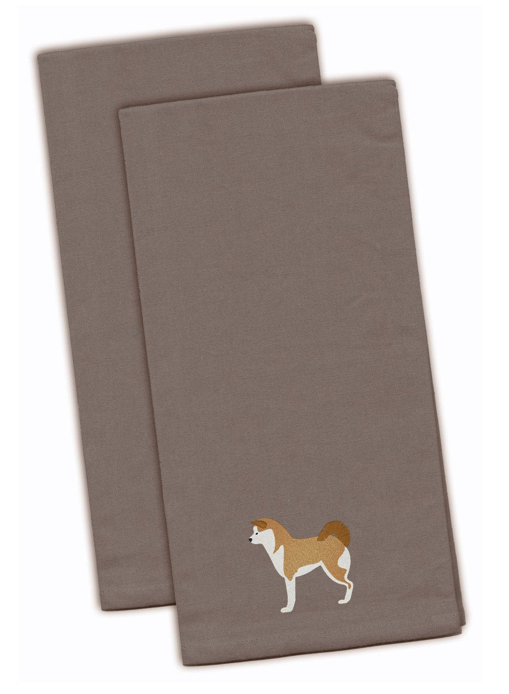 Decorate your space with our Akita artwork on a Emboidered Towels. Discover the elegant touch your kitchen deserves with the Gray Embroidered Towel Set from Caroline's Treasures. This set includes two sophisticated kitchen towels, each meticulously crafted from 100% pure cotton, promising a soft touch and superior absorbency. These generously sized towels, each measuring 19 inches by 28 inches, offer ample coverage for all your drying needs._x000B__x000B_What sets this towel set apart is the exquisite embroidered design adorning each towel. It's not just a kitchen accessory; it's a statement of taste and style. These towels are perfect for daily use, and are easy to maintain. For the best care, machine wash in cold water and dry with low heat. When ironing, please ensure to use a pressing cloth to protect the integrity of the design._x000B__x000B_Experience a blend of functionality and fashion with the Gray Embroidered Towel Set from Caroline's Treasures. Elevate your kitchen d�cor and bring a touch of luxury to your everyday tasks with these high-quality towels.