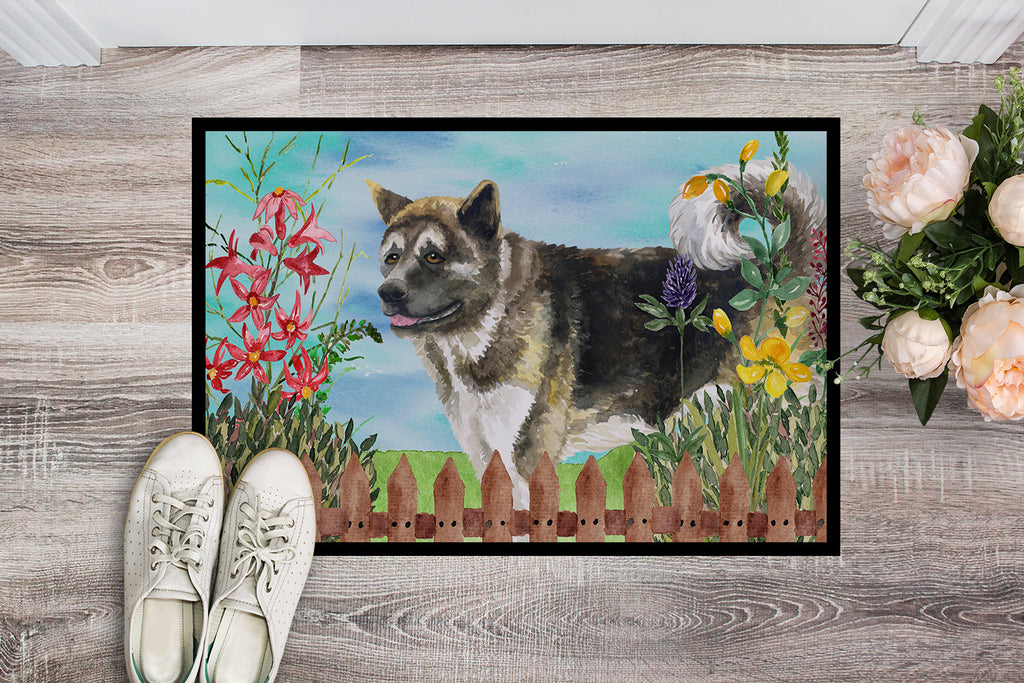 Decorate your space with our Akita artwork on a Doormat. Bring a bit of Spring into your home with a Spring Doormat. Welcome your guests in style with our Artwork Door Mat, designed to withstand almost any weather condition. This mat, measuring approximately 24 by 36 inches, is held together by durable black binding tape. Its top layer, composed of polyester felt, is dyed with the eye-catching image you see on the mat. A few layers below provide the mat with stability, while its rubber bottom is stamped to help prevent slipping and ensures safety. Our mat works wonderfully as both an indoor or outdoor door mat. For cleaning, simply hose it off with water or use a power washer - no need for any cleaner that produces suds. Avoid scrubbing with a brush, instead, opt for the vacuum on floor setting. Designed manufactured and printed in the USA, this mat is a perfect addition to your porch, outdoor kitchen, entryway, or any indoor space. Its unique design makes it a charming decorative rug that greets your guests and adds a stylish touch to your home decor.