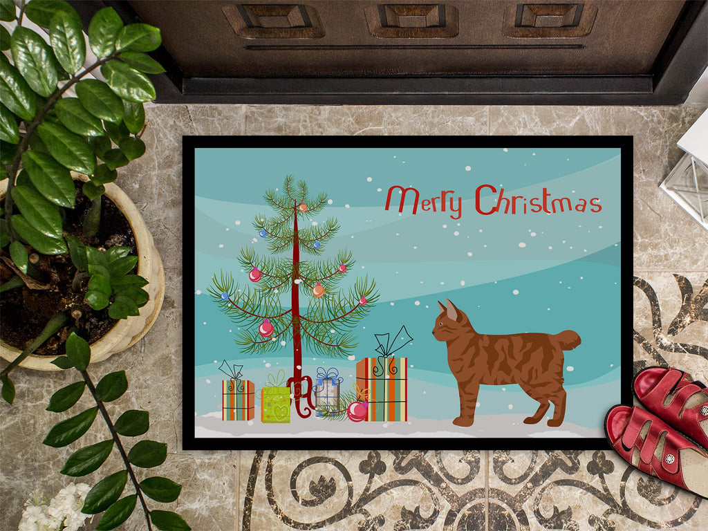 American Bobtail #2 Cat Merry Christmas Doormat - 24x36 Decorative Floor Mat – Indoor/Outdoor Rug with Artistic Flair CK4551JMAT