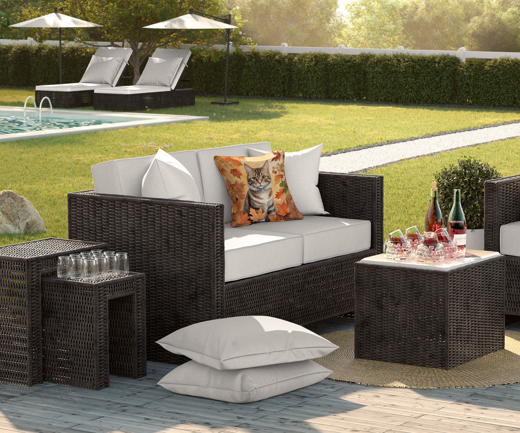 American Bobtail Cat in Fall Leaves Throw Pillow