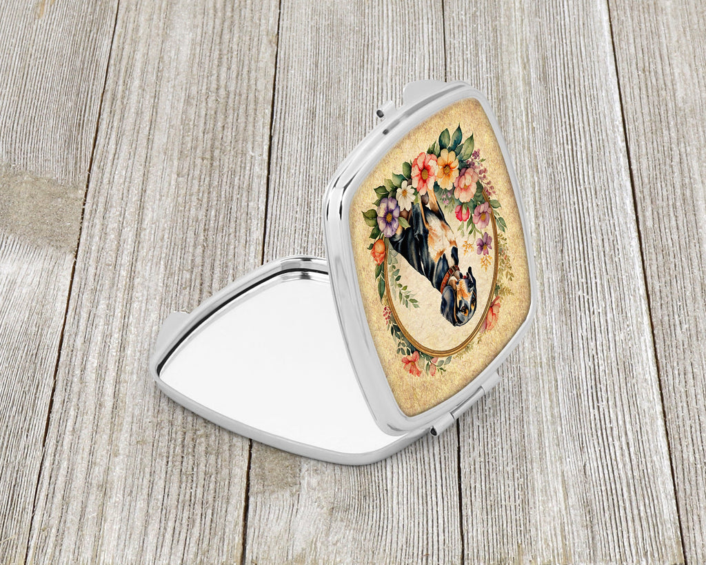 American English Coonhound and Flowers Compact Mirror – Stylish Purse Mirror with Artistic Covers