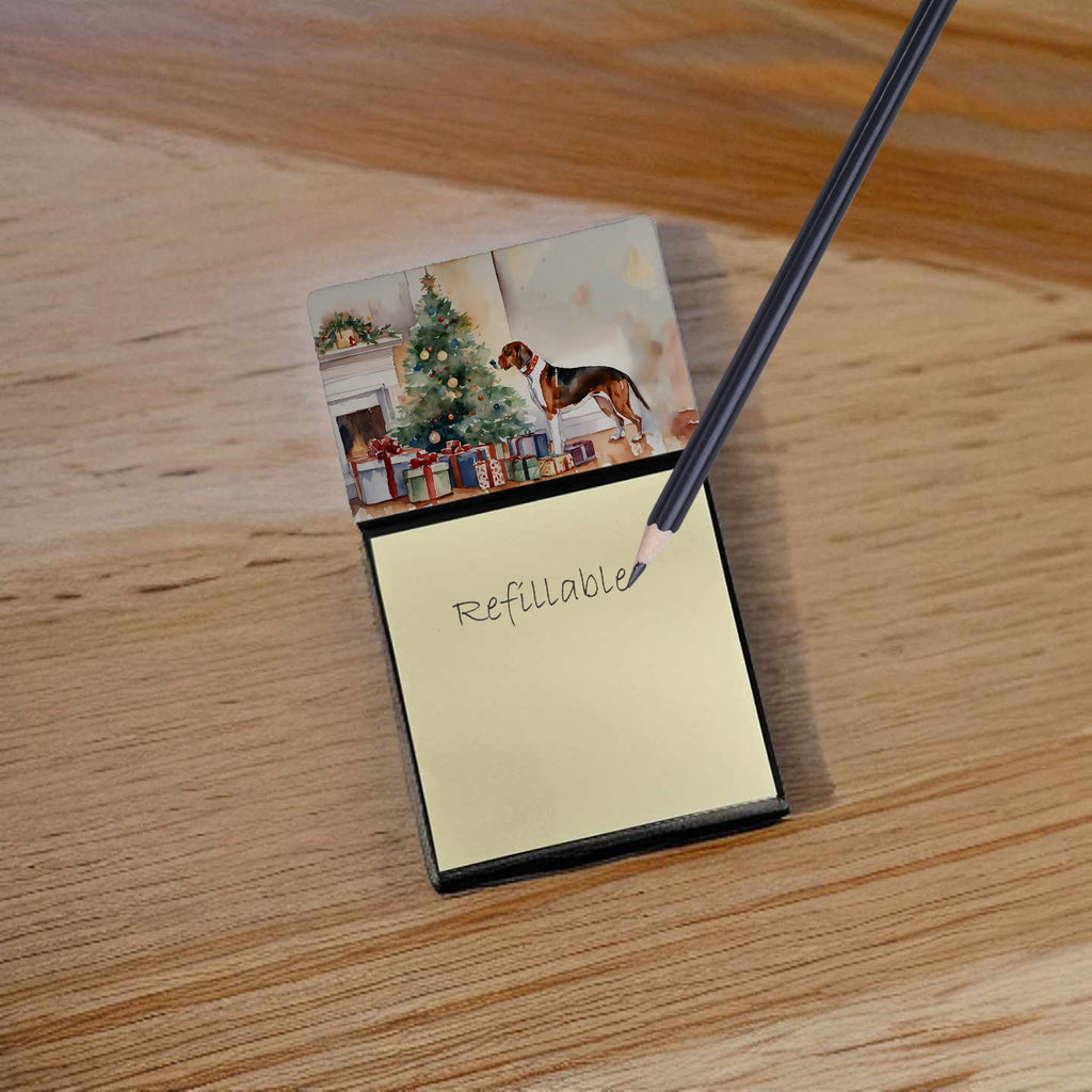 Decorate your space with our Christmas American English Coonhound artwork on a Sticky Note Holder. Add a touch of creativity and flair to your desk with the Decorative Sticky Note Holder from Caroline's Treasures. This uniquely designed sticky note dispenser will not only keep your notes in one place but also add an artistic element to your workspace. The top of the holder features beautiful artwork that is sure to catch the eye. Crafted for convenience, this sticky note holder comes with a small pad of 3-inch x 3-inch sticky notes at the bottom. The holder is designed for easy refilling; simply remove the last sheet of a new sticky note pad and stick it onto the board. This feature ensures you will always have sticky notes at your disposal. This Sticky Note Holder makes a perfect gift. Be it for your colleagues at work, your Facebook friends, or even your dog groomer or hairdresser, this versatile product fits the bill. You can use it for making grocery lists, leaving notes for loved ones, or for jotting down important reminders. The bottom board is rigid and can be magnetized by adding a business card size magnet to the back (sold separately). This makes it even more versatile, allowing you to place it on a refrigerator or any other magnetic surface. With this Sticky Note Holder, you're not only organizing your notes, but also personalizing your space.