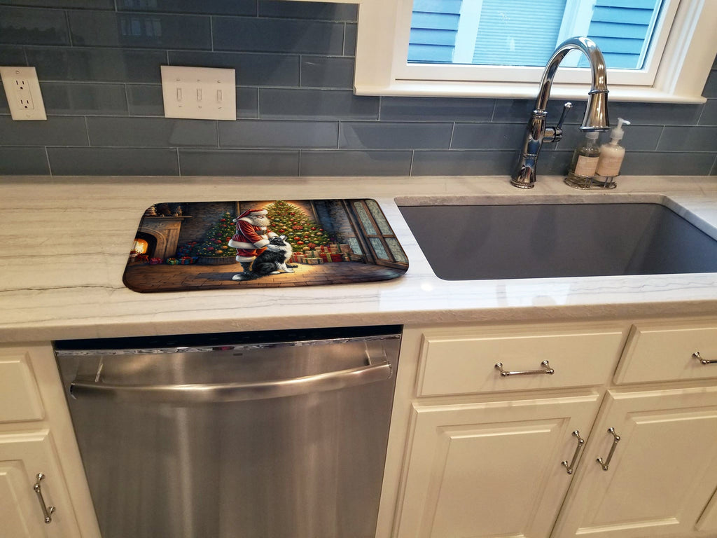 Dish Drying Mat featuring breed specific Border Collie artwork. Celebrate Christmas with this Christmas Dish Drying Mat. Say goodbye to messy countertops and soggy dish towels with our innovative dish drying mat. Our high-quality dish drying pad is designed to keep your countertops dry while offering a stylish and efficient solution. Whether you're air drying dishes, glasses, stemware, silverware, pots, pans, bottles, or even fruits and vegetables, our dish mat is the perfect choice. The 14 inches x 22 inches size fits most counters and dish drying racks, and the non-slip design ensures stability. Made with water-absorbent polyester and a polyurethane foam insert, our dish drying mat is not only functional but also durable. It's machine washable and printed in the USA for long-lasting use. The beautiful artwork adds flair to your kitchen decor, making it a perfect housewarming gift or present for any occasion. Upgrade your kitchen experience with our absorbent and versatile dish drying mat.