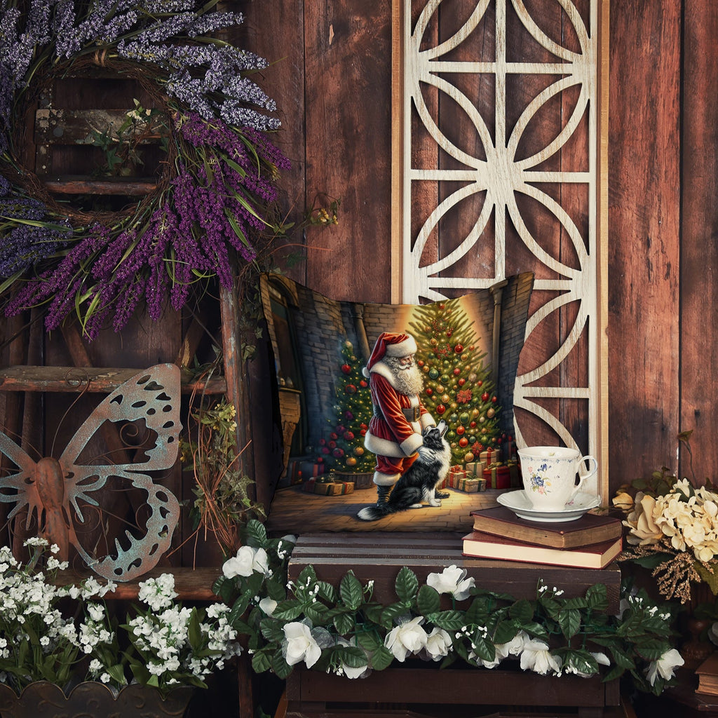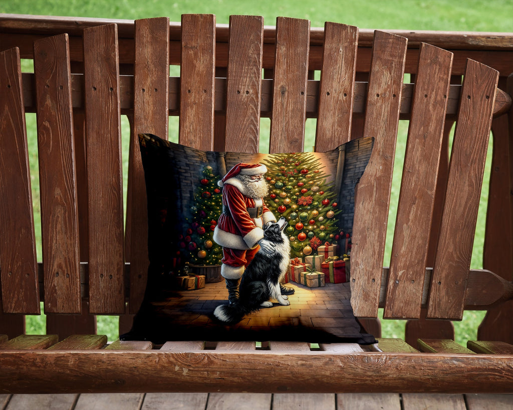 Throw Pillow featuring breed specific Border Collie artwork. Celebrate Christmas with this Christmas Pillow. Add a touch of vibrancy and comfort to your outdoor seating with Caroline's Treasures Fabric Decorative Pillow. Measuring approximately 14 inches by 14 inches, this outdoor pillow is crafted to elevate the appeal of your patio furniture, infusing it with vivid color and artistic flair. The pillow includes a 100% Polyester Fabric sham filled with a quality pillow form to provide superior comfort. Innovatively made from our brand new material, specifically woven for its water resistance, this pillow is designed for durability. The soft canvas fabric offers versatility in use, fit for your indoor couch or your outdoor patio, porch, or veranda. The fabric is dyed with colorfast dyes built for resilience against weather conditions, ensuring the pillow retains its beauty over time. Constructed by sewing three fabric pieces to create a sham, the polyester insert is then nestled inside to form the pillow, resulting in an overstuffed pillow that maintains its shape. Both the sham and the pillow insert are proudly made in the United States. As the pillows are handcrafted, there may be minor variations in size, further enhancing their unique charm. Experience comfort in style with Caroline's Treasures Fabric Decorative Pillow.