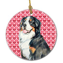 Decorate your space with our Valentine's Day Bernese Mountain Dog artwork on a Ornament. Add a touch of personalized charm to your Christmas tree this holiday season with our Ceramic Ornament. Measuring 2.8125 inches in diameter, this round porcelain ornament beautifully reflects your festive lights, enhancing your holiday decor. The gloss surface sets off the vibrant, full-color artwork contributed by one of our talented artists, bringing a pop of color and joy to your tree. This Ceramic Ornament doesn't stop at being merely decorative. The white back is designed for personalization. Write a heartfelt message, mark a special year, or inscribe a date with a paint pen or a permanent marker to create a treasured memento. Please ensure you allow any personalization to dry thoroughly before handling to maintain the pristine finish. Included with the ornament is a delicate gold cord for easy hanging. Made in the USA, this Ceramic Ornament makes an exceptional gift for a pet sitter, teacher, family member, or anyone you wish to share a little Christmas magic with. With its blend of style, charm, and personal touch, it's a meaningful addition to any Christmas tree.