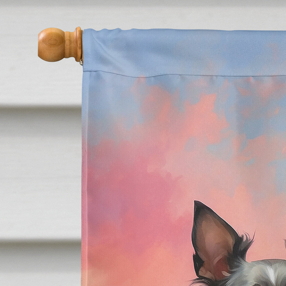 Decorate your space with our Valentine's Day Chinese Crested artwork on a Large Flag. Presenting our Heavy Duty Polyester House Size Decorative Sleeve Pole Flag, a vibrant addition to enhance the aesthetic appeal of your home. This large decorative flag, measuring approximately 28 x 40 inches, offers ample coverage and visibility.   Each flag is meticulously sewn and made individually, ensuring a unique piece that may slightly vary in size. It's a sleeve pole flag, designed to fit a standard decorative flag pole effortlessly. Please note that the flag pole and bracket are not included and should be purchased separately. What sets our flag apart is its dual-sided print. The design is mirrored on both sides of the fabric, allowing for uniform visibility regardless of the angle. Printed in full color, our flag showcases vibrant hues that truly stand out. To ensure lasting vibrancy and durability, the dyes are heat-set into the fabric. This ensures your flag remains bright and captivating through various weather conditions. Elevate the look of your home with our Heavy Duty Polyester House Size Decorative Sleeve Pole Flag!