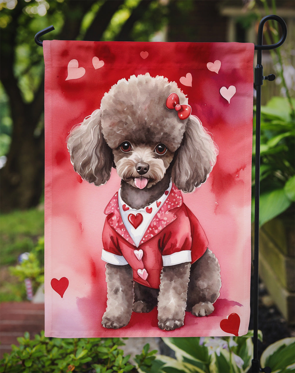 Chocolate Poodle Valentine’s Day Garden Flag – Dog-Themed Heart Yard Decor