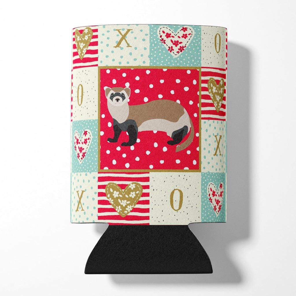 Decorate your space with our Valentine's Day Ferret artwork on a Hugger. Introducing our Can or Bottle Hugger, a must-have accessory for your beverage enjoyment. Designed to perfectly fit any standard 12-ounce can, this can cooler is the ideal companion to keep your soda, beer, or any drink of your choice at the perfect temperature. Our can hugger is not just functional, it's a work of art. Featuring full-color artwork that's permanently dyed into the foam, this hugger promises a design that's fade-resistant and made to last, making your beverage stand out in style. The design isn't silk-screened, which ensures the vibrancy of the colors, offering you a long-lasting, appealing aesthetic. What sets our can hugger apart is its high-quality foam fabric, which is not only durable but also machine washable for easy maintenance. Whether you call it a huggie, can coolie, can cozie, or beer holder, this drink sleeve brings style and function together. Proudly designed, printed, and sewn in the USA, our Can or Bottle Hugger is an ideal addition to your beverage experience. Match it with one of our insulated coolers for a complete gift set, adding flair and convenience to your drink enjoyment.
