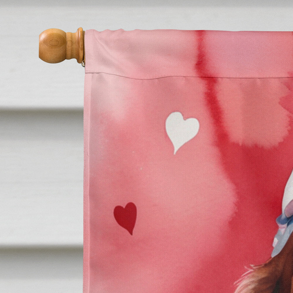 Decorate your space with our Valentine's Day Irish Setter artwork on a Large Flag. Presenting our Heavy Duty Polyester House Size Decorative Sleeve Pole Flag, a vibrant addition to enhance the aesthetic appeal of your home. This large decorative flag, measuring approximately 28 x 40 inches, offers ample coverage and visibility. Each flag is meticulously sewn and made individually, ensuring a unique piece that may slightly vary in size. It's a sleeve pole flag, designed to fit a standard decorative flag pole effortlessly. Please note that the flag pole and bracket are not included and should be purchased separately. What sets our flag apart is its dual-sided print. The design is mirrored on both sides of the fabric, allowing for uniform visibility regardless of the angle. Printed in full color, our flag showcases vibrant hues that truly stand out. To ensure lasting vibrancy and durability, the dyes are heat-set into the fabric. This ensures your flag remains bright and captivating through various weather conditions. Elevate the look of your home with our Heavy Duty Polyester House Size Decorative Sleeve Pole Flag!