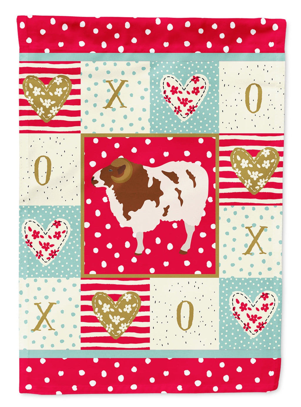 Decorate your space with our Valentine's Day Jacob Sheep artwork on a Large Flag. Presenting our Heavy Duty Polyester House Size Decorative Sleeve Pole Flag, a vibrant addition to enhance the aesthetic appeal of your home. This large decorative flag, measuring approximately 28 x 40 inches, offers ample coverage and visibility. Each flag is meticulously sewn and made individually, ensuring a unique piece that may slightly vary in size. It's a sleeve pole flag, designed to fit a standard decorative flag pole effortlessly. Please note that the flag pole and bracket are not included and should be purchased separately. What sets our flag apart is its dual-sided print. The design is mirrored on both sides of the fabric, allowing for uniform visibility regardless of the angle. Printed in full color, our flag showcases vibrant hues that truly stand out. To ensure lasting vibrancy and durability, the dyes are heat-set into the fabric. This ensures your flag remains bright and captivating through various weather conditions. Elevate the look of your home with our Heavy Duty Polyester House Size Decorative Sleeve Pole Flag!