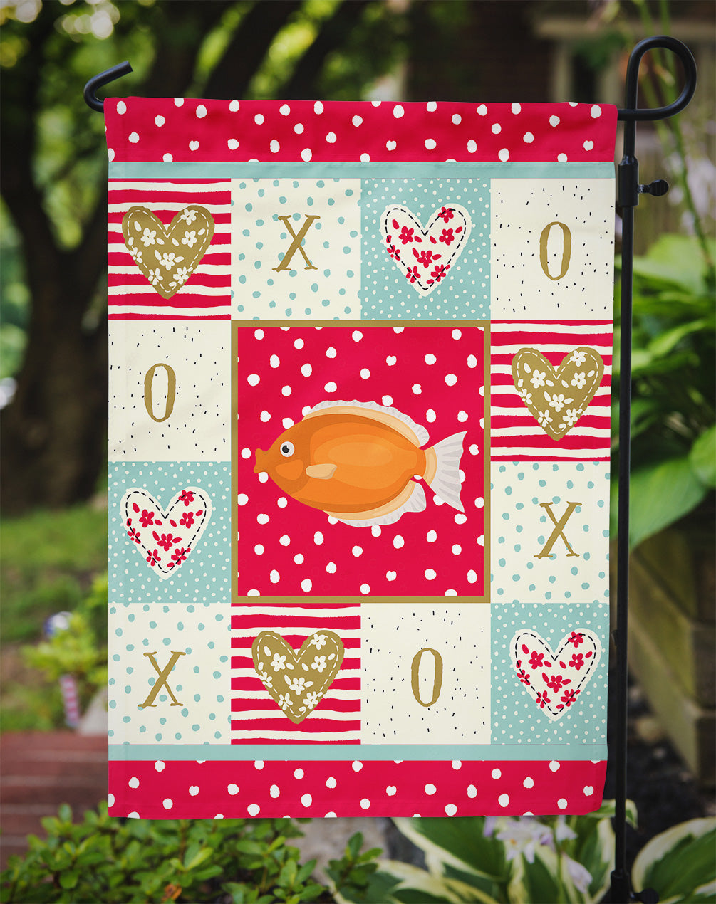 Decorate your space with our Valentine's Day artwork on a Garden Flag. Enhance the beauty of your garden, patio, or yard with Caroline's Treasures Decorative Garden Flag, proudly made in the USA. Crafted from two pieces of thick, double-sided polyester fabric, this 2-ply garden flag is designed to withstand various weather conditions, making it water-resistant and weatherproof. Featuring correctly readable words on both sides, this garden flag offers a delightful visual experience from any angle. With its heavier weight, it stands out among other garden flags, ensuring stability and durability even in wind, rain, and snow. Measuring approximately 11 1/4 inches by 15 1/2 inches, this flag allows you to personalize your outdoor decor. It comes with a 1 1/2-inch sleeve sewn in, allowing easy attachment to any standard garden flag stand or garden size porch hanger (sold separately). Make a statement in your outdoor space with Caroline's Treasures Decorative Garden Flag, a vibrant and high-quality flag that adds color and personality to your surroundings. Proudly made in the USA, it's a symbol of quality craftsmanship and attention to detail.
