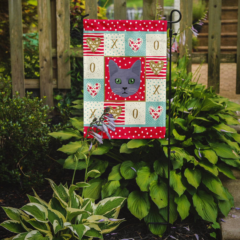 Decorate your space with our Valentine's Day Korat artwork on a Garden Flag. Enhance the beauty of your garden, patio, or yard with Caroline's Treasures Decorative Garden Flag, proudly made in the USA. Crafted from two pieces of thick, double-sided polyester fabric, this 2-ply garden flag is designed to withstand various weather conditions, making it water-resistant and weatherproof. Featuring correctly readable words on both sides, this garden flag offers a delightful visual experience from any angle. With its heavier weight, it stands out among other garden flags, ensuring stability and durability even in wind, rain, and snow. Measuring approximately 11 1/4 inches by 15 1/2 inches, this flag allows you to personalize your outdoor decor. It comes with a 1 1/2-inch sleeve sewn in, allowing easy attachment to any standard garden flag stand or garden size porch hanger (sold separately). Make a statement in your outdoor space with Caroline's Treasures Decorative Garden Flag, a vibrant and high-quality flag that adds color and personality to your surroundings. Proudly made in the USA, it's a symbol of quality craftsmanship and attention to detail.