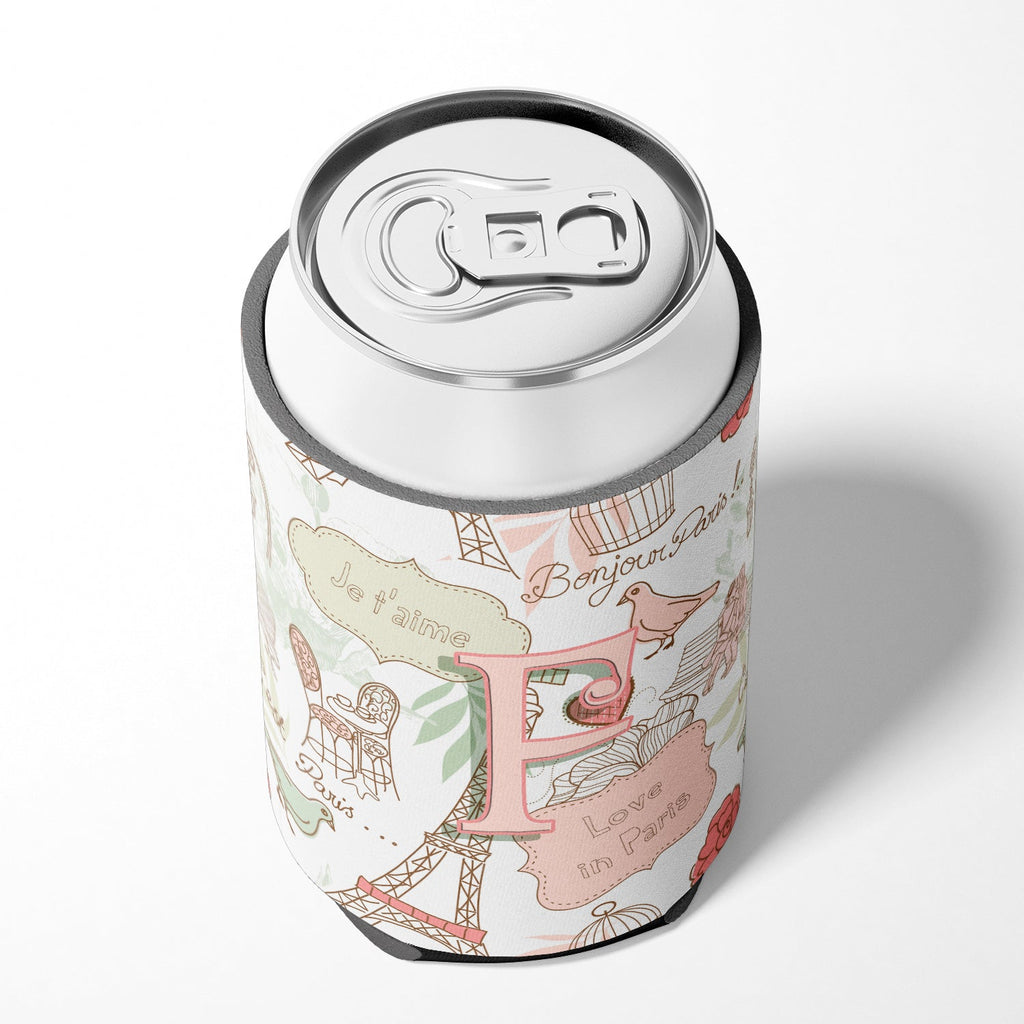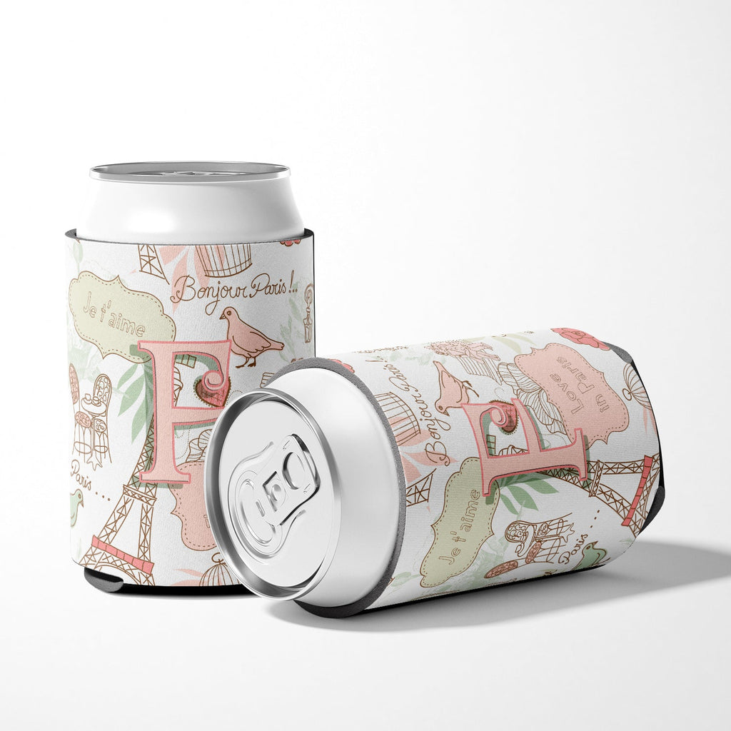 Letter F Love in Paris Pink Can or Bottle Hugger CJ2002-FCC