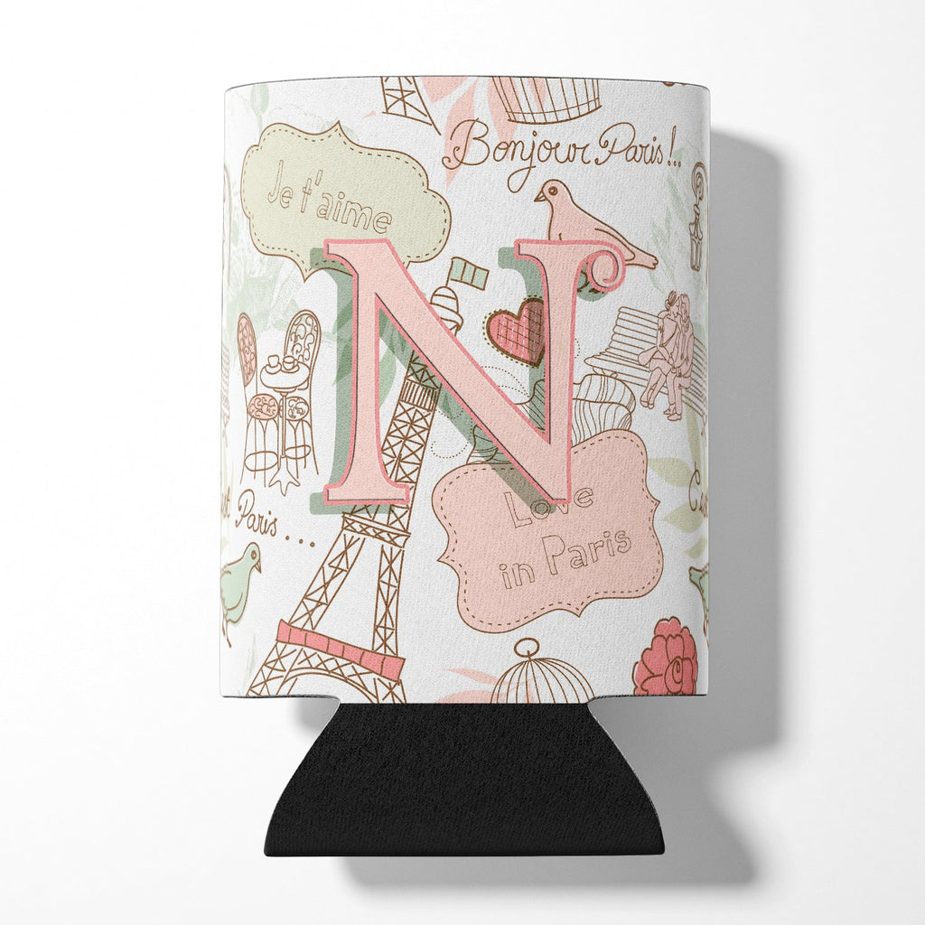 Letter N Love in Paris Pink Can or Bottle Hugger CJ2002-NCC