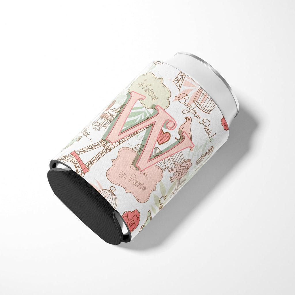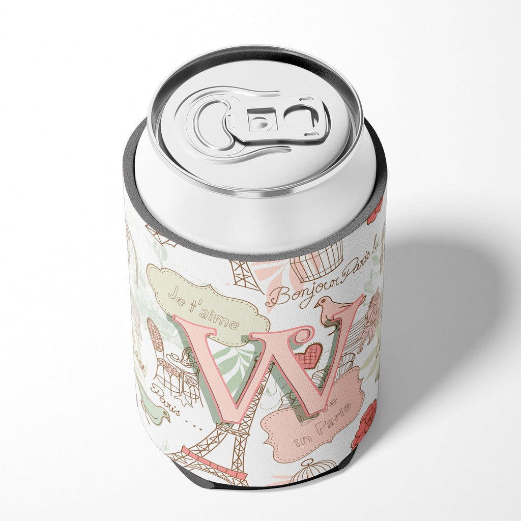 Letter W Love in Paris Pink Can or Bottle Hugger CJ2002-WCC
