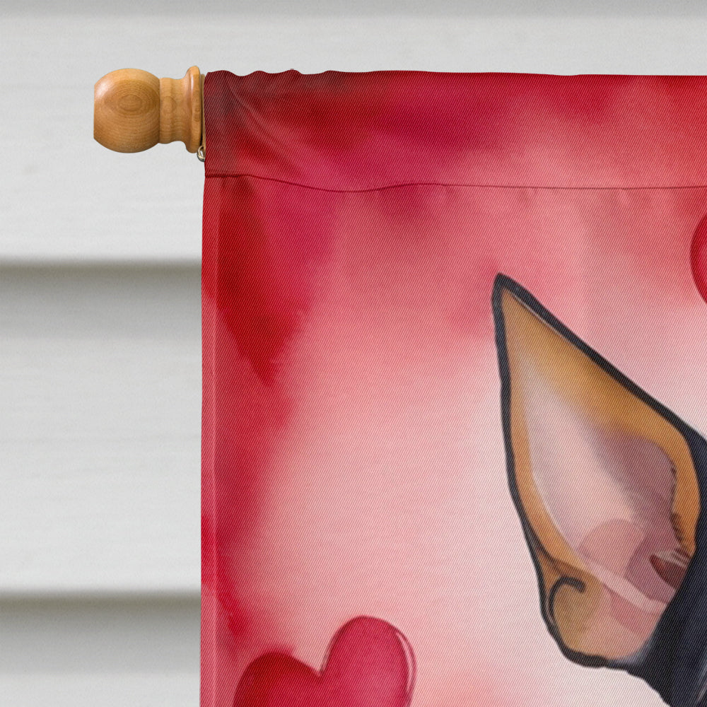 Decorate your space with our Valentine's Day Manchester Terrier artwork on a Large Flag. Presenting our Heavy Duty Polyester House Size Decorative Sleeve Pole Flag, a vibrant addition to enhance the aesthetic appeal of your home. This large decorative flag, measuring approximately 28 x 40 inches, offers ample coverage and visibility. Each flag is meticulously sewn and made individually, ensuring a unique piece that may slightly vary in size. It's a sleeve pole flag, designed to fit a standard decorative flag pole effortlessly. Please note that the flag pole and bracket are not included and should be purchased separately. What sets our flag apart is its dual-sided print. The design is mirrored on both sides of the fabric, allowing for uniform visibility regardless of the angle. Printed in full color, our flag showcases vibrant hues that truly stand out. To ensure lasting vibrancy and durability, the dyes are heat-set into the fabric. This ensures your flag remains bright and captivating through various weather conditions. Elevate the look of your home with our Heavy Duty Polyester House Size Decorative Sleeve Pole Flag!