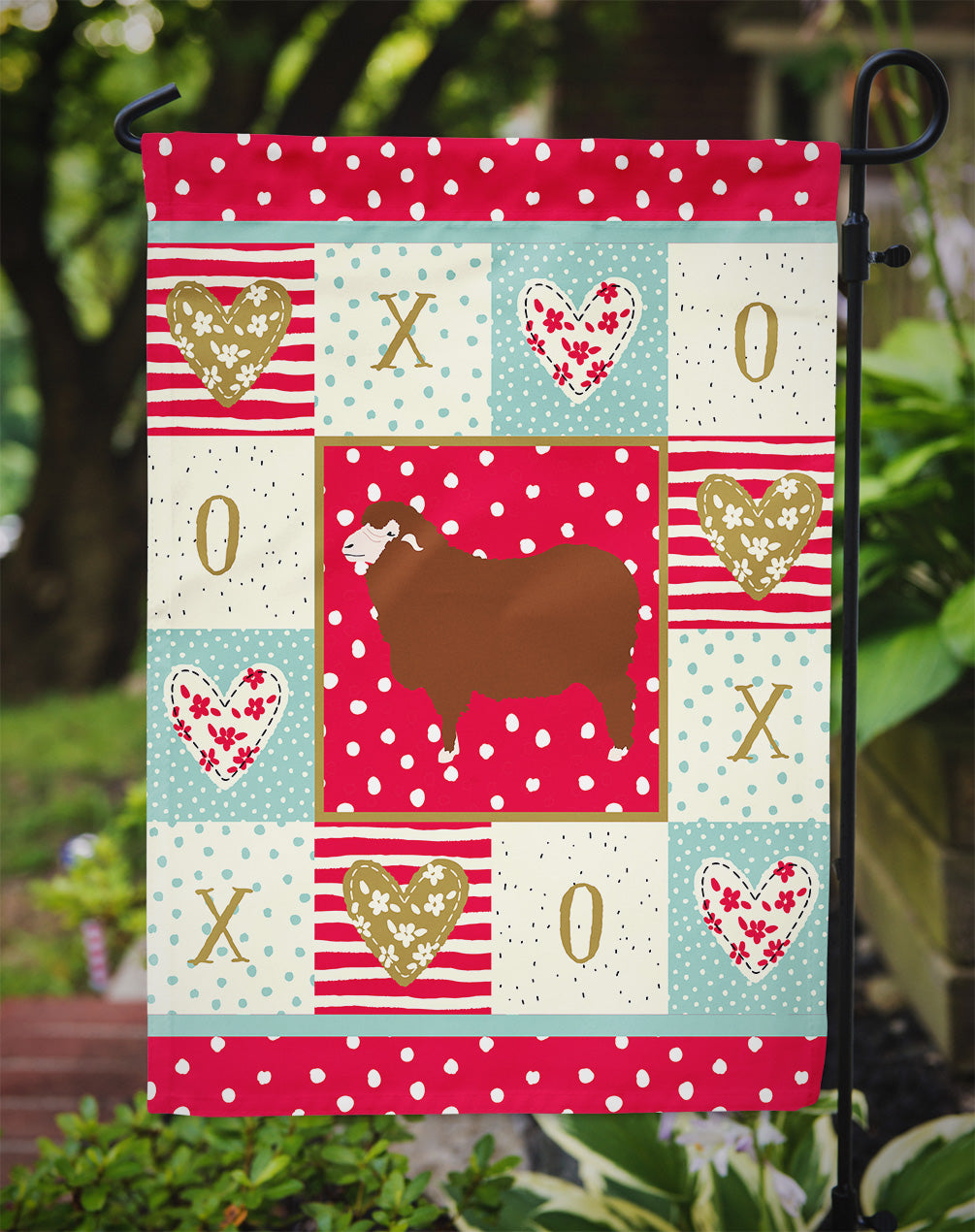 Decorate your space with our Valentine's Day Merino Sheep artwork on a Garden Flag. Enhance the beauty of your garden, patio, or yard with Caroline's Treasures Decorative Garden Flag, proudly made in the USA. Crafted from two pieces of thick, double-sided polyester fabric, this 2-ply garden flag is designed to withstand various weather conditions, making it water-resistant and weatherproof. Featuring correctly readable words on both sides, this garden flag offers a delightful visual experience from any angle. With its heavier weight, it stands out among other garden flags, ensuring stability and durability even in wind, rain, and snow. Measuring approximately 11 1/4 inches by 15 1/2 inches, this flag allows you to personalize your outdoor decor. It comes with a 1 1/2-inch sleeve sewn in, allowing easy attachment to any standard garden flag stand or garden size porch hanger (sold separately). Make a statement in your outdoor space with Caroline's Treasures Decorative Garden Flag, a vibrant and high-quality flag that adds color and personality to your surroundings. Proudly made in the USA, it's a symbol of quality craftsmanship and attention to detail.